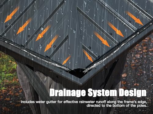 • ❤️Choose Domi hardtop gazebo for an exceptional outdoor experience- Our built-in drainage system collects rainwater on the roof, flowing down from inside the column to the ground through the gutter. This feature ensures you can enjoy the tranquility and comfort of outdoor life even on rainy days, avoiding any chaos caused by rainfall. If you value quality, choose Domi 14x22FT gazebo for a seamless outdoor experience.