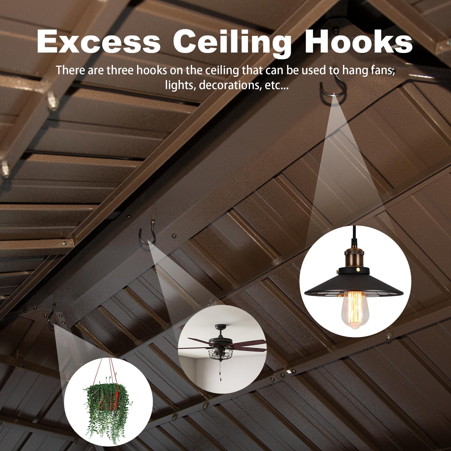 - Versatile Ceiling Hooks- This Domi outdoor gazebo comes with three durable ceiling hooks that provide a convenient way to hang lights, fans, or other decorations. Whether you’re setting the mood for an evening barbecue or adding a bit of flair to your space, these hooks allow you to effortlessly create the ideal atmosphere for any occasion.