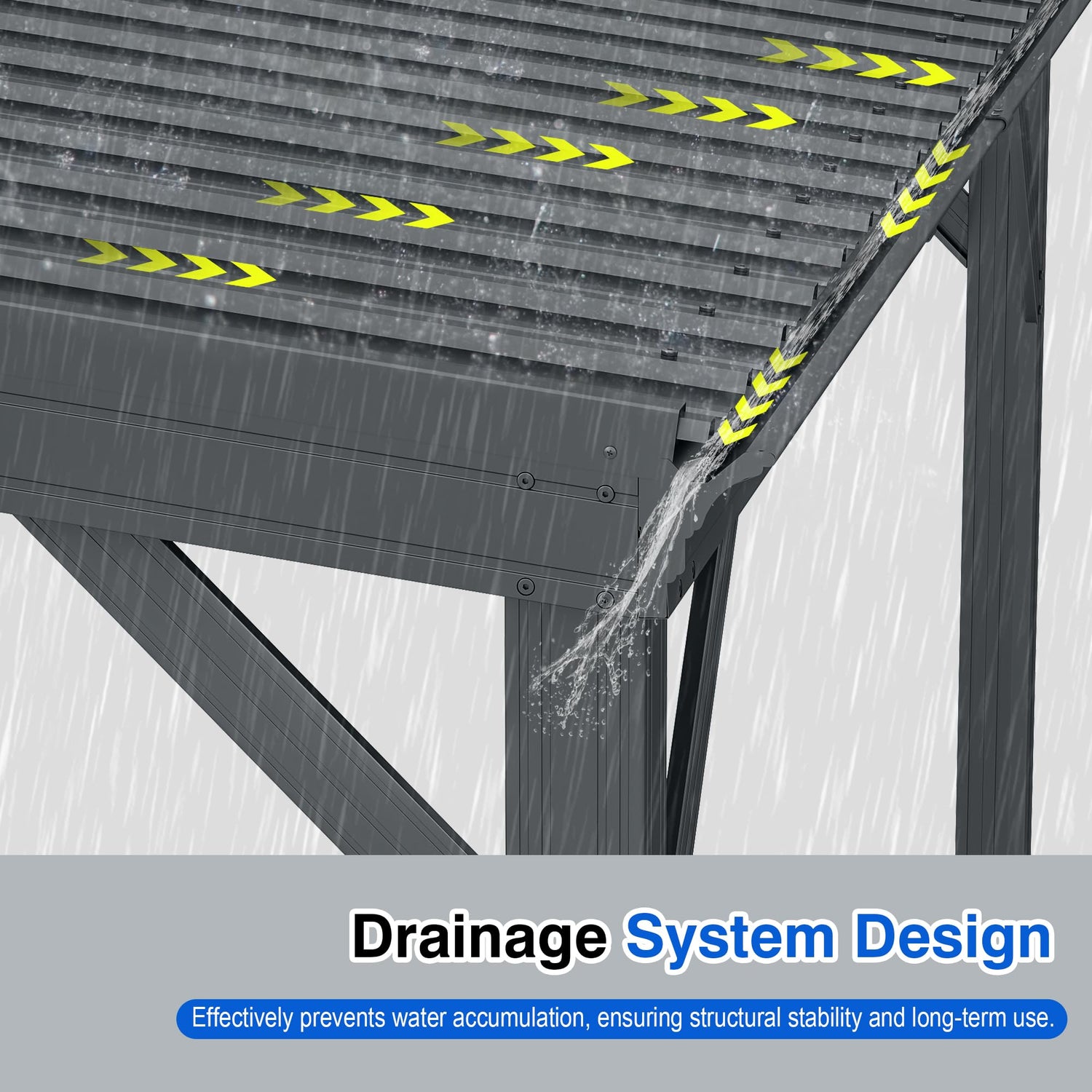 - 🏡Durable Construction for Longevity: Crafted with robust materials, including a galvanized steel roof panel and an aluminum frame. Designed with slopes and flutes to prevent water puddling, ensuring durability in various weather conditions.