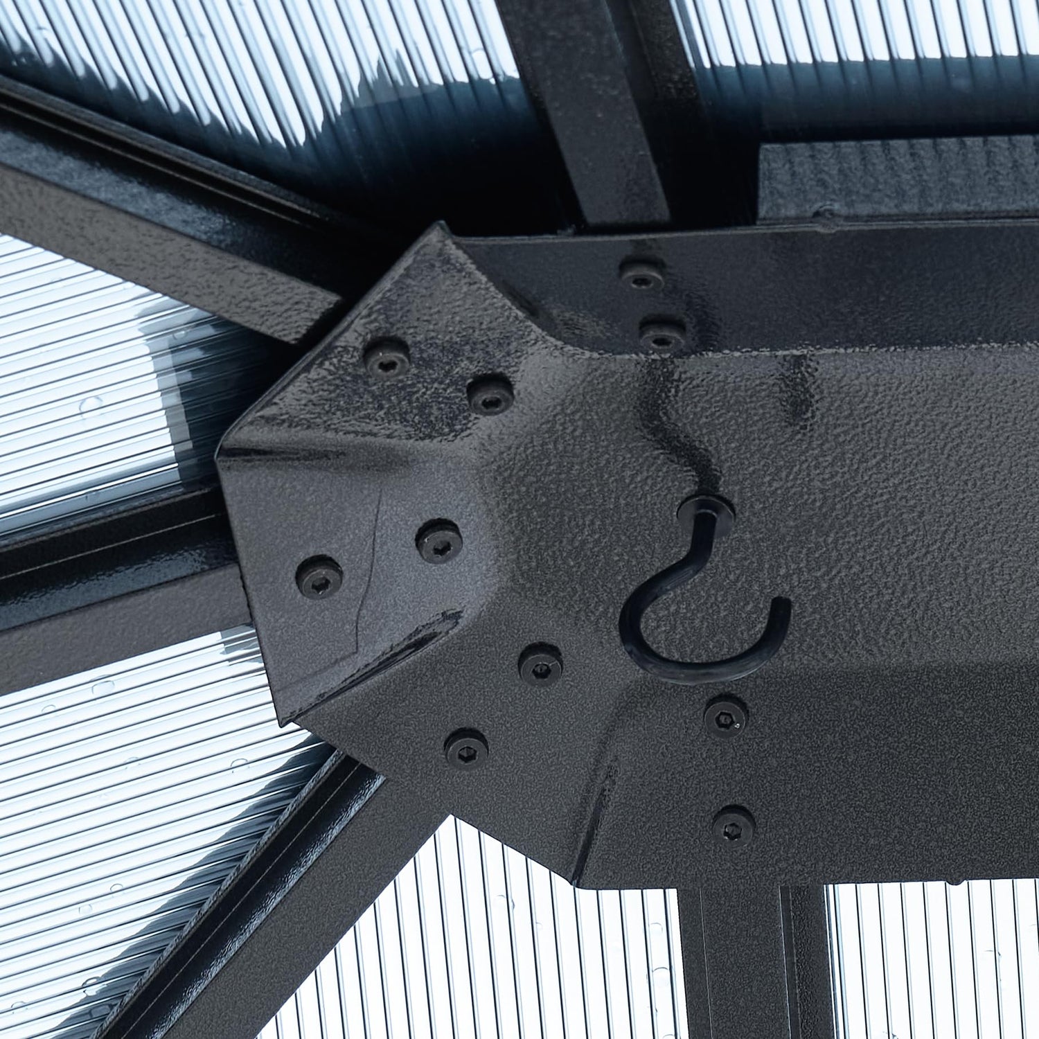 • Easy Installation: With its sturdy construction and user-friendly design, setting up our patio canopy is a breeze. The gazebo comes with hooks on the roof, allowing you to conveniently hang fans or lights for added comfort and ambiance. Additionally, the pillars made of aluminum and the iron roof contribute to its overall stability and quality.