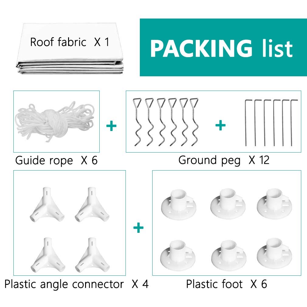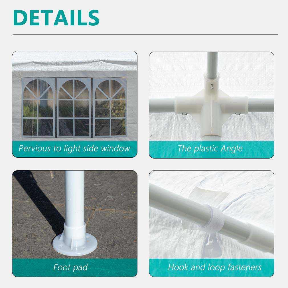 • ❤【HIGH QUANITY 】The plastic connect between the tubes enhance the stability of the tent frame.The party tent have rust & corrosion resistant white powder coated steel framework, new material plastic connector of wedding tent make the frame stronger than others, we provide the patio tent with ropes and Stakes for added Stability. Wedding tent party tent canoy.