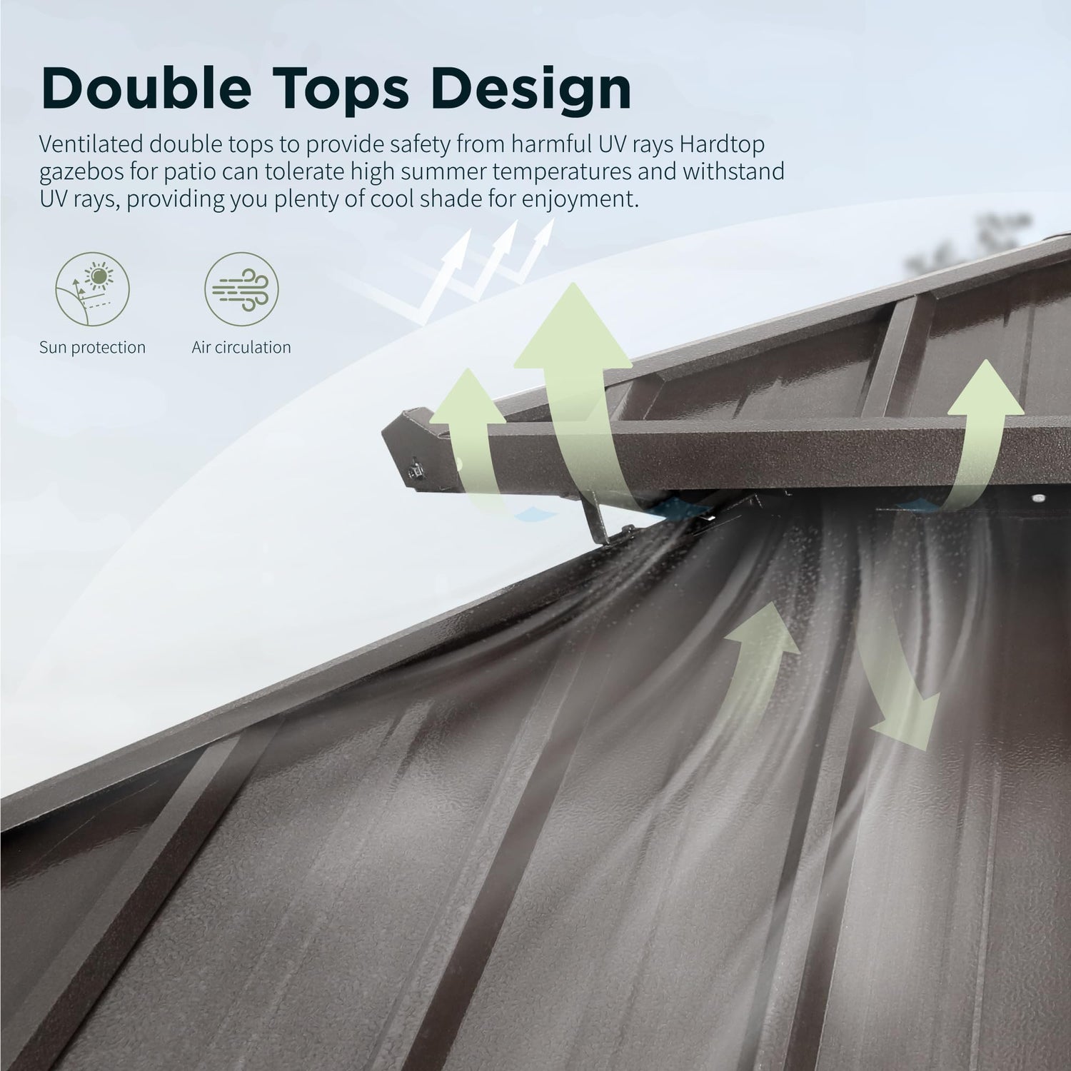 - ✅ 【All Seasons Galvanized Steel Double-Roof】Designed with a double vented roof for optimal airflow and comfort during high winds. Its robust construction offers protection against wind, rain, and snow, while the galvanized steel ensures thermal insulation, waterproofing, and noise reduction. It has a snow load capacity of 2500 LBS.