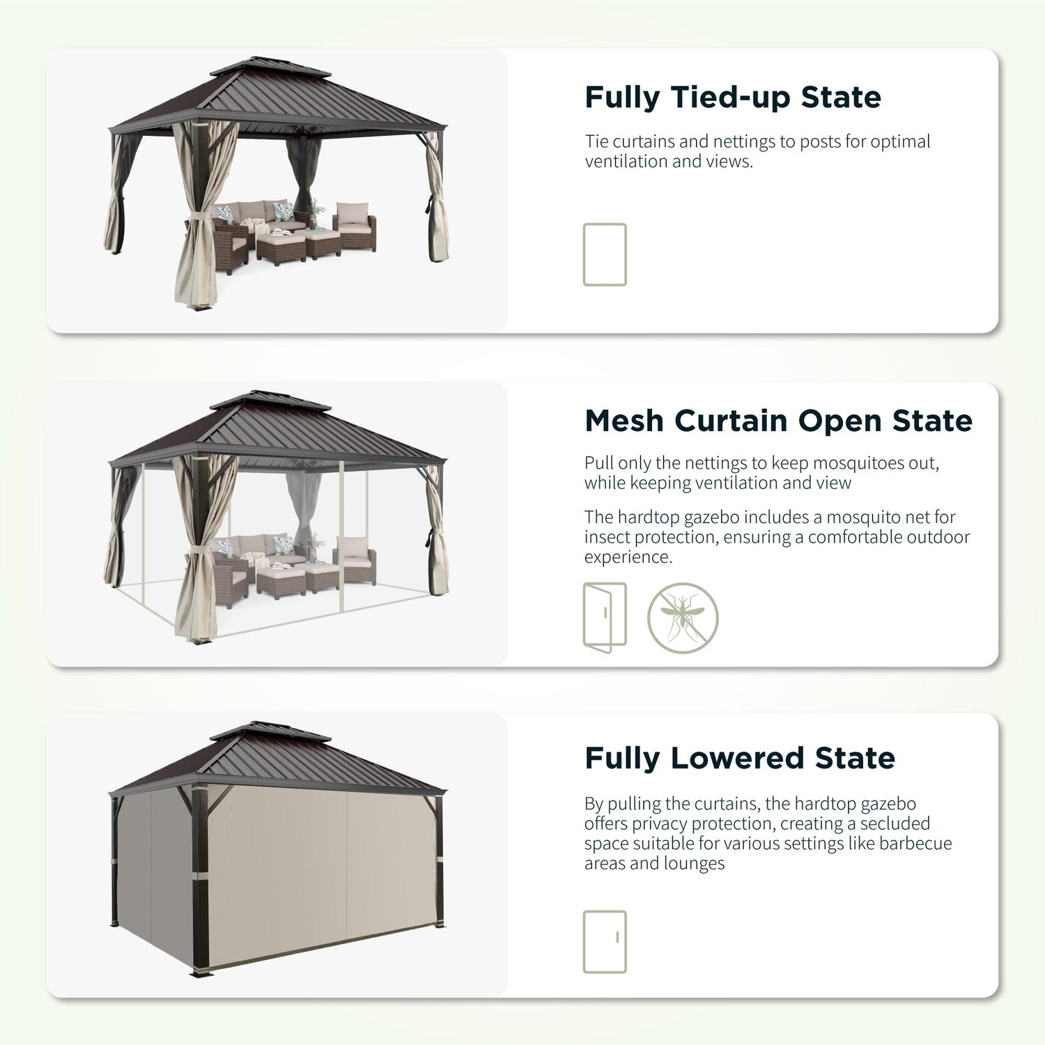 GREEN PARTY 12 X 14ft Hardtop Gazebo with Nettings and Curtains, Heavy Duty Double Roof Galvanized Steel, Outdoor Aluminum Gazebos Pergolas for Patios, Backyard, Deck, Garden, Lawns