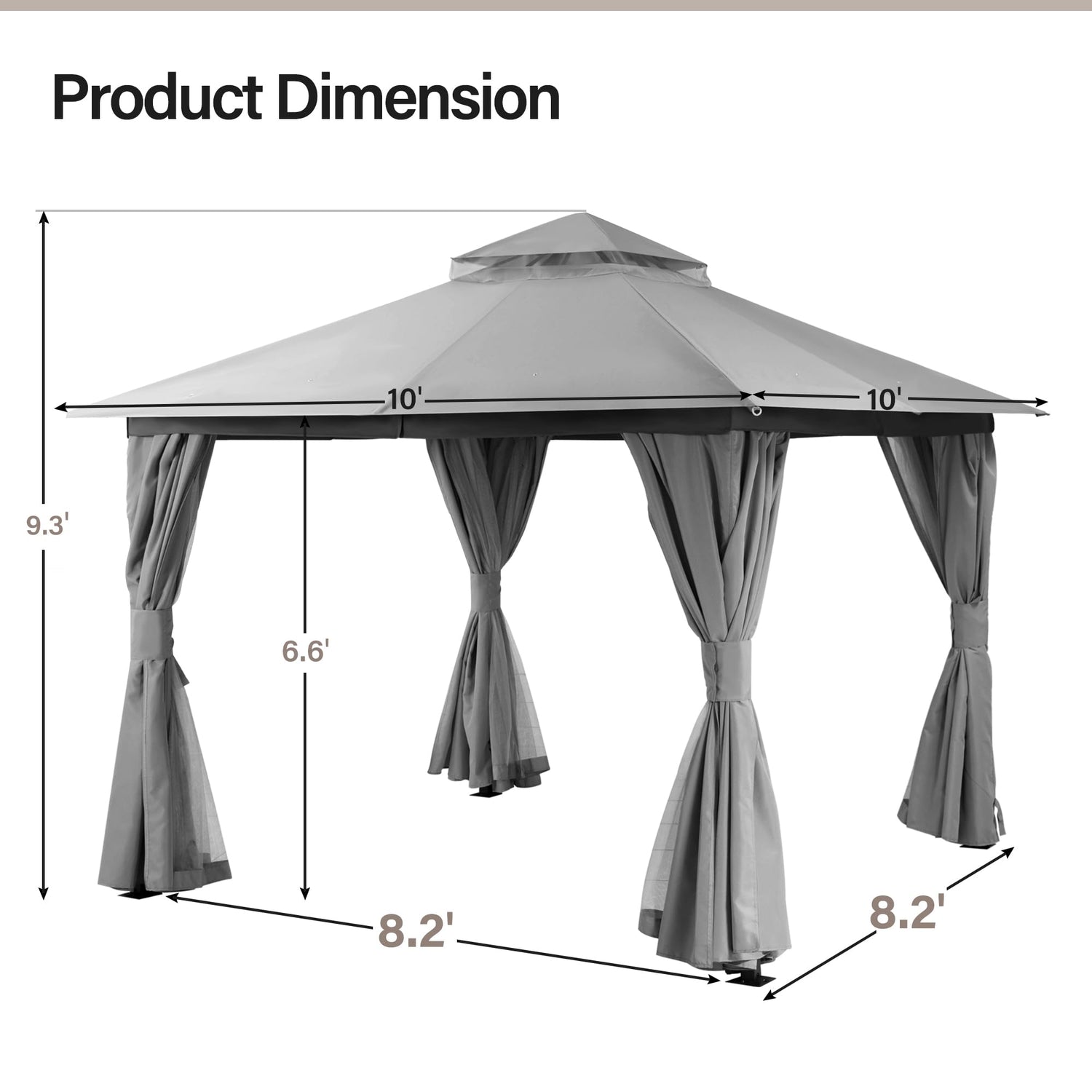 - Tips: Please double check that the internal dimension of the gazebo meet the requirements before placing an order.