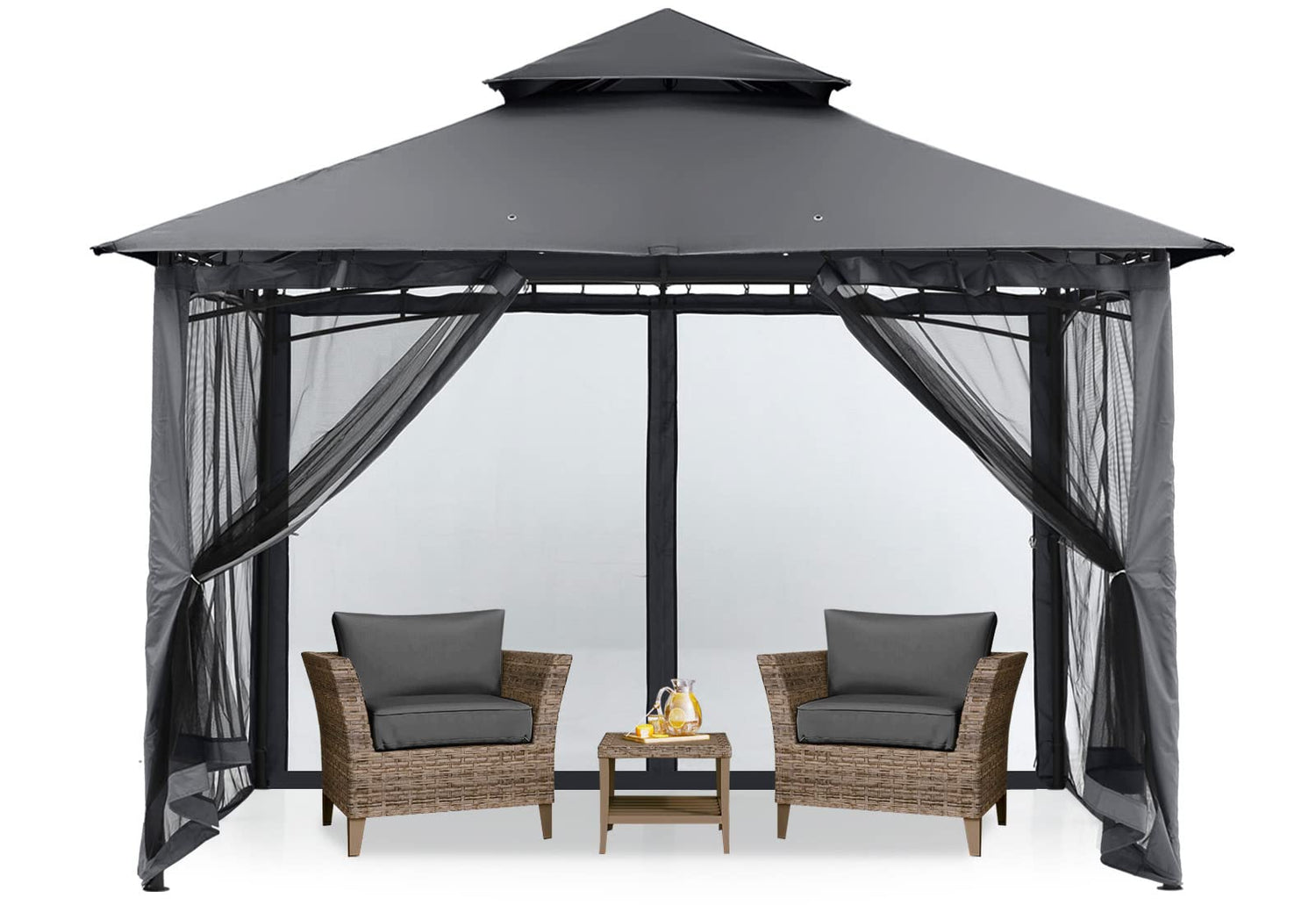 - 🔹4 Netting Walls: Features 4 Removable zippered screen nets. Protect you from the sun and rain as well as flying insects, while still having full airflow and visibility. Velcro straps allowing you to adjust the mosquito nets or corner curtains coverage to fit your needs, beautiful and practical, hope you enjoy the great outdoor time from your private gazebo.