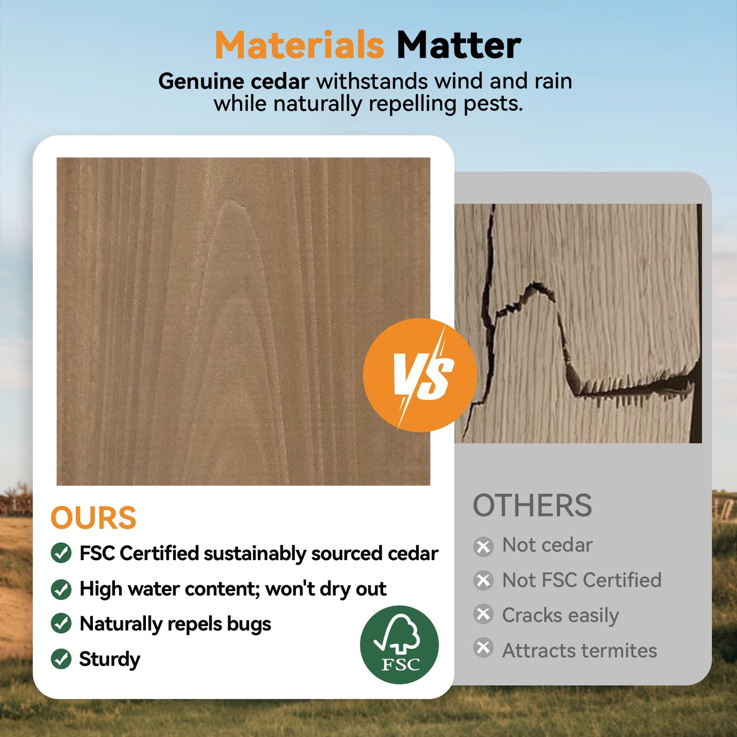 - [Premium Cedar Wood Frame] Crafted from FSC-certified premium cedar wood, this gazebo ensures durability and sustainability. Powder-coated steel bolts and brackets enhance rust resistance, offering long-lasting performance.