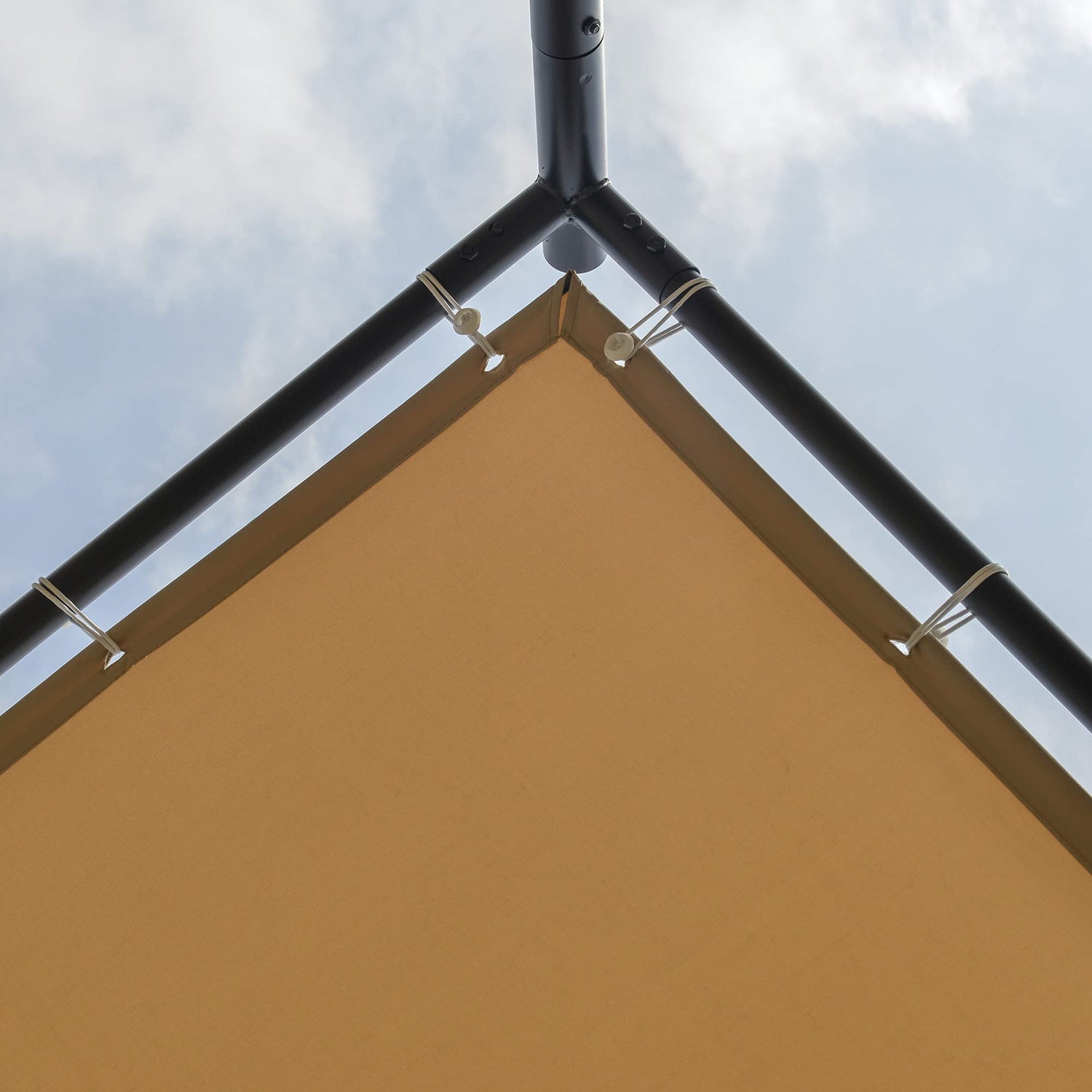 - Practical Canopy: The outdoor pergola is made from polyester with a PVC coating, which can provide protection from outdoor elements. The slope design of the roof allows rainwater to flow down and prevent water accumulation. Finally, the bungee cord design help you to easily connect the patio canopy on the frame