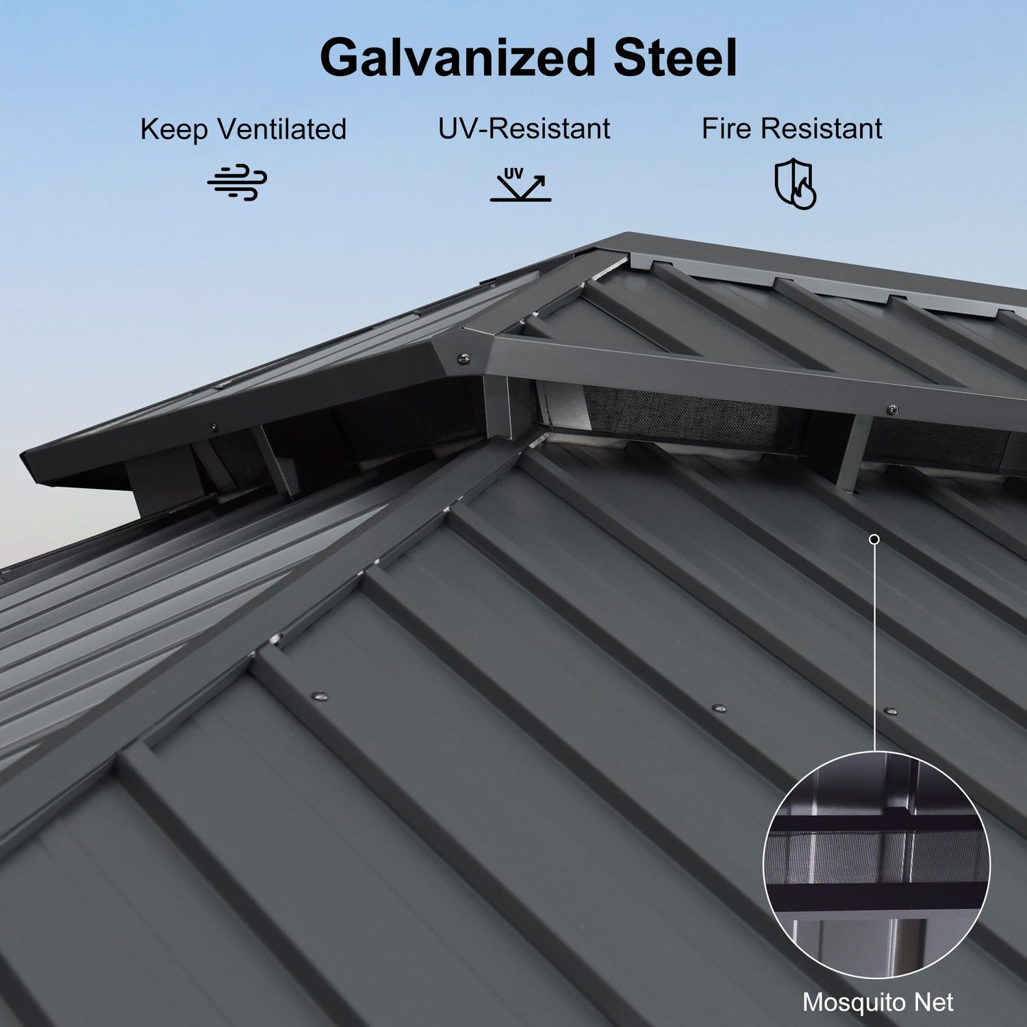 - 260/gsm Textile Netting: Heavier than any regular netting. This means that the netting is less likely to tear or wear out quickly, providing a longer lifespan for the product. Moreover, the heavier mesh netting has a stable drape, which is not easily affected by wind or other external forces, and maintains the overall aesthetics of the gazebo.