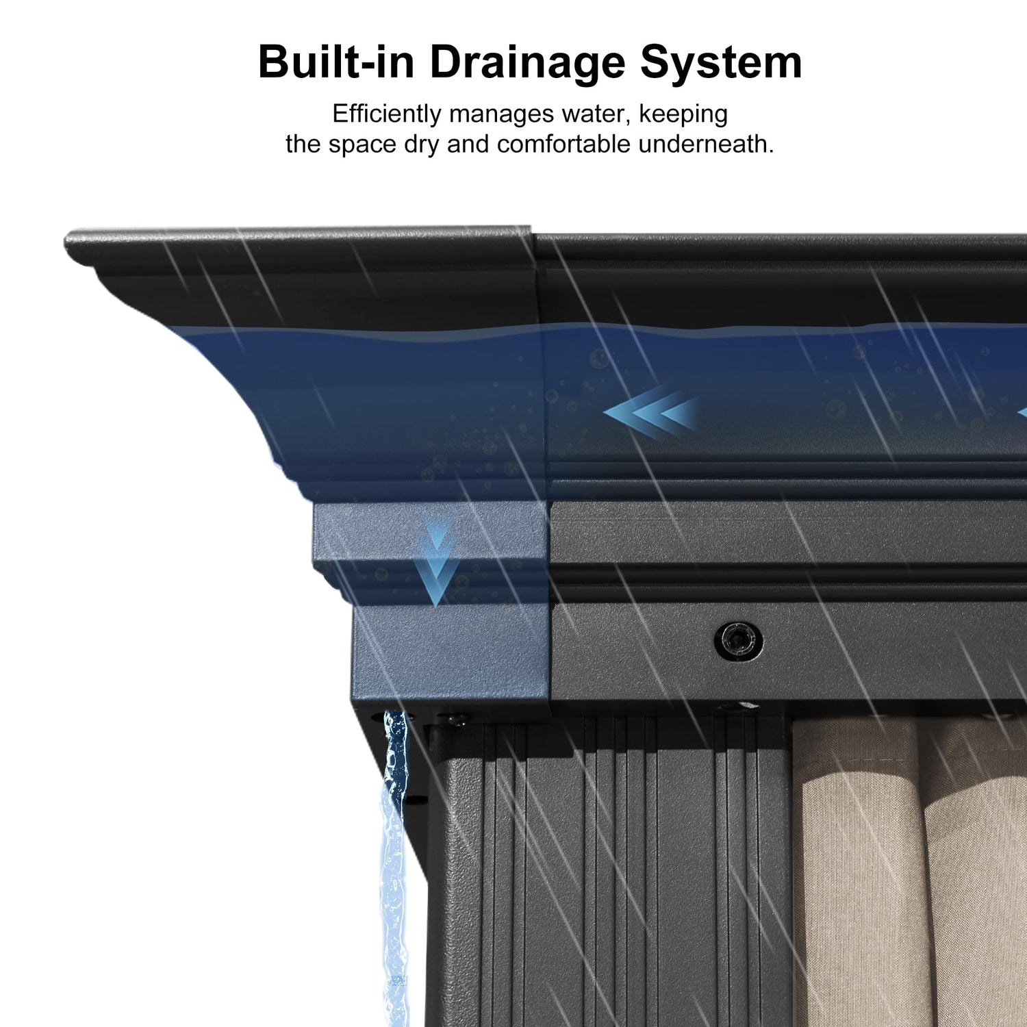 - Built-in Drainage System: The innovative design of the built-in drainage system ensures that rainwater flows away from the edges of the frame and columns.