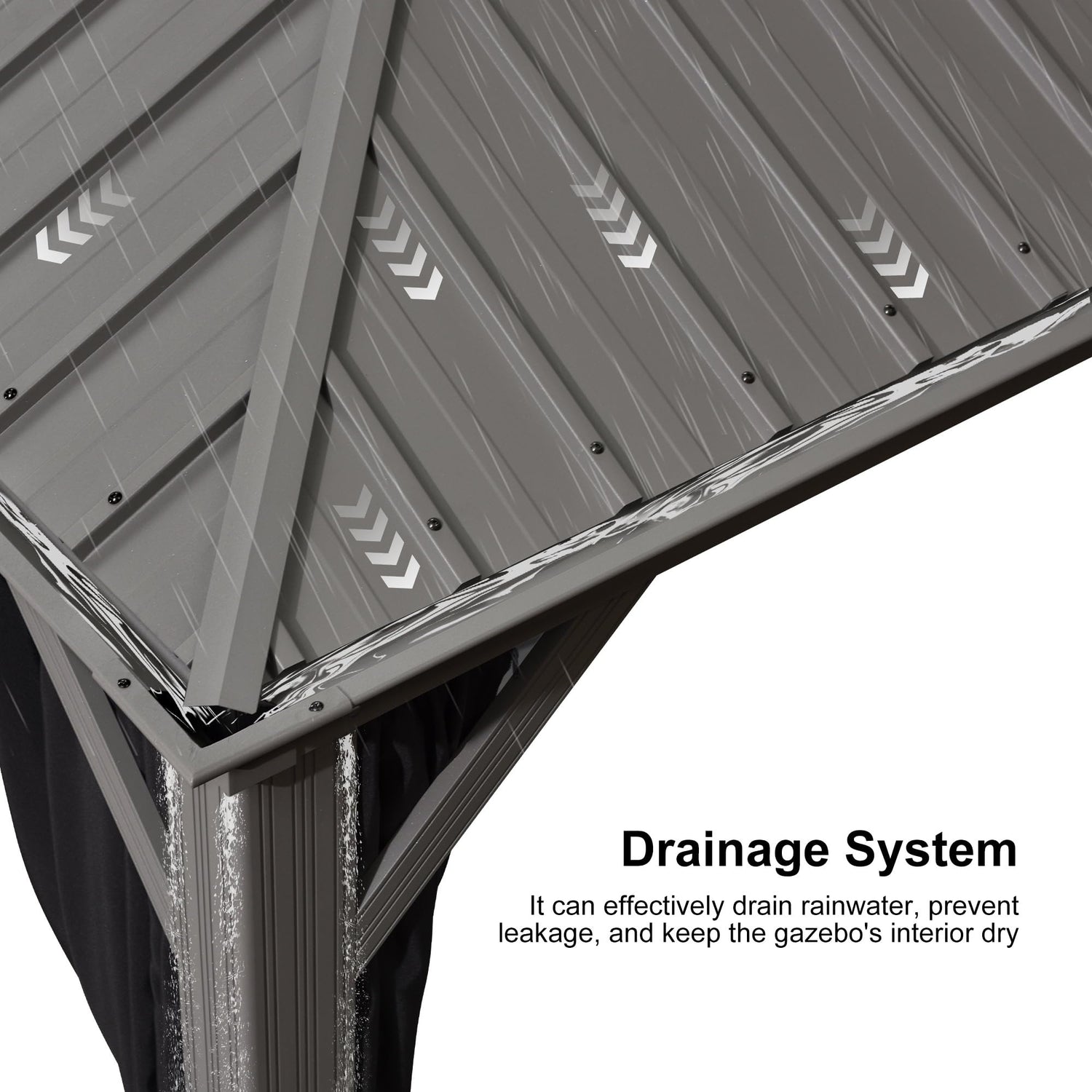 - Optimized Drainage System: Drainage system ensures effective rainwater discharge, safeguarding against leaks. This innovative feature greatly extends the life of the permanent gazebo.