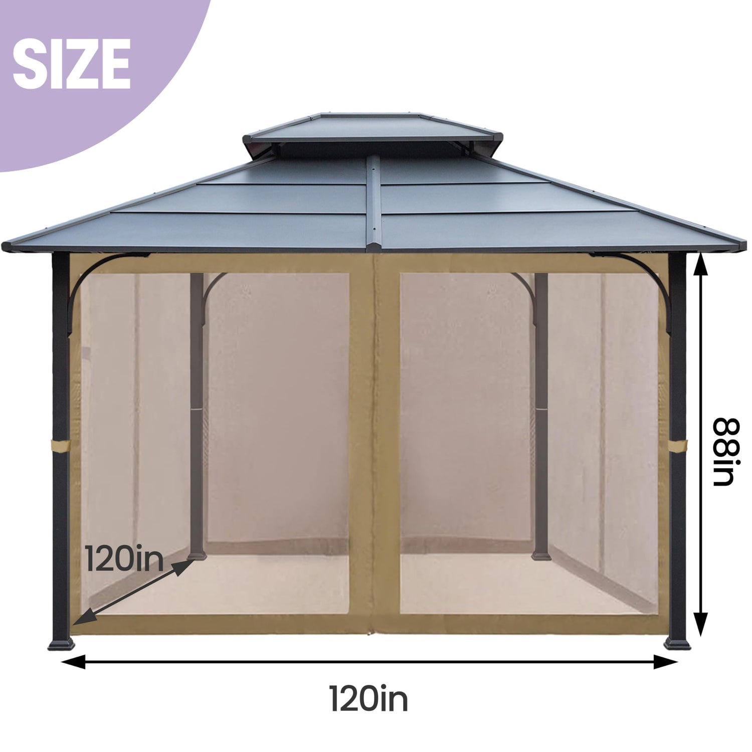 Details: Tradesparker 10x10 Gazebo Replacement Mesh Walls,4-Sided Mosquito Screen Netting with 48Curtain Rings & 48Rail Hooks,Black (Universal Fit for Gazebo & Pergola)