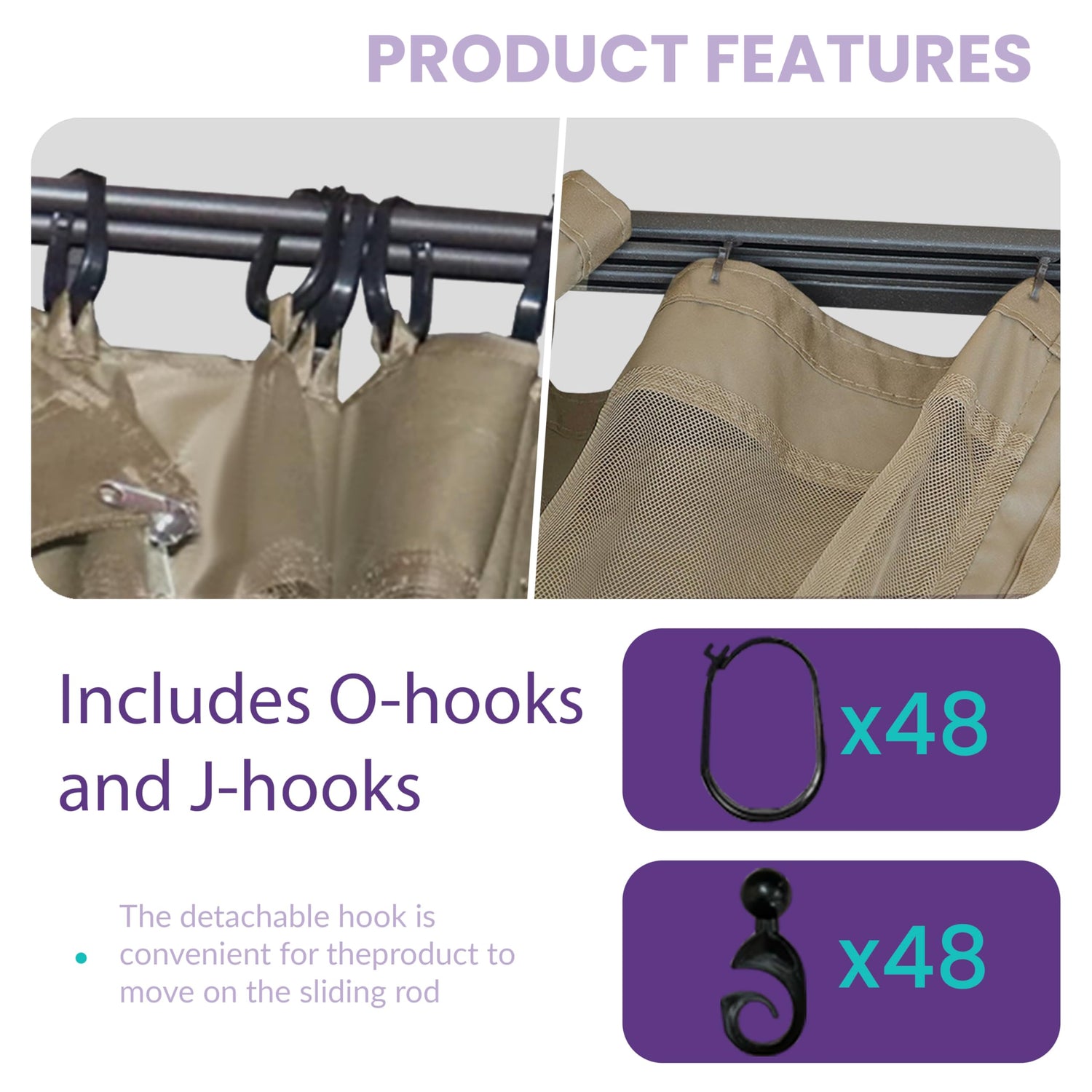 - Secure Hook Fastening System – Includes 48 O-hooks and 48 J-hooks for reinforced attachment, ensuring your gazebo curtains or netting stay firmly in place even in breezy conditions.