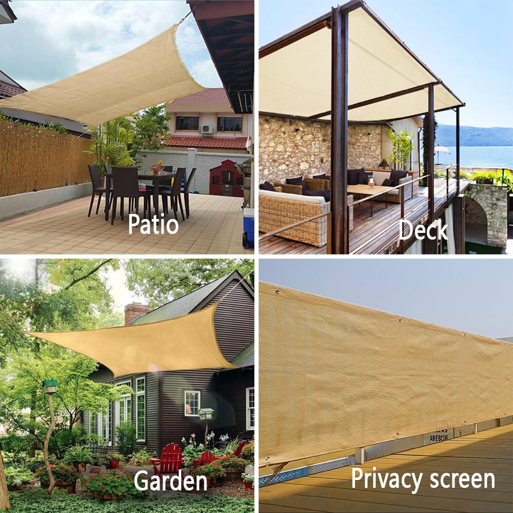 - 【Durable & Breathable】: Featuring double-reinforced edges and brass grommets spaced every 20 inches (not D-rings), the shade cloth is designed to withstand long-term outdoor use without tearing or fading. Its breathable design effectively blocks heat while allowing airflow, and when it rains, water passes through, preventing pooling. (Note: It’s water-resistant, not waterproof). "This sun shade cloth has different edge fixation than a shade sail. It’s windproof but not recommended for high wind.