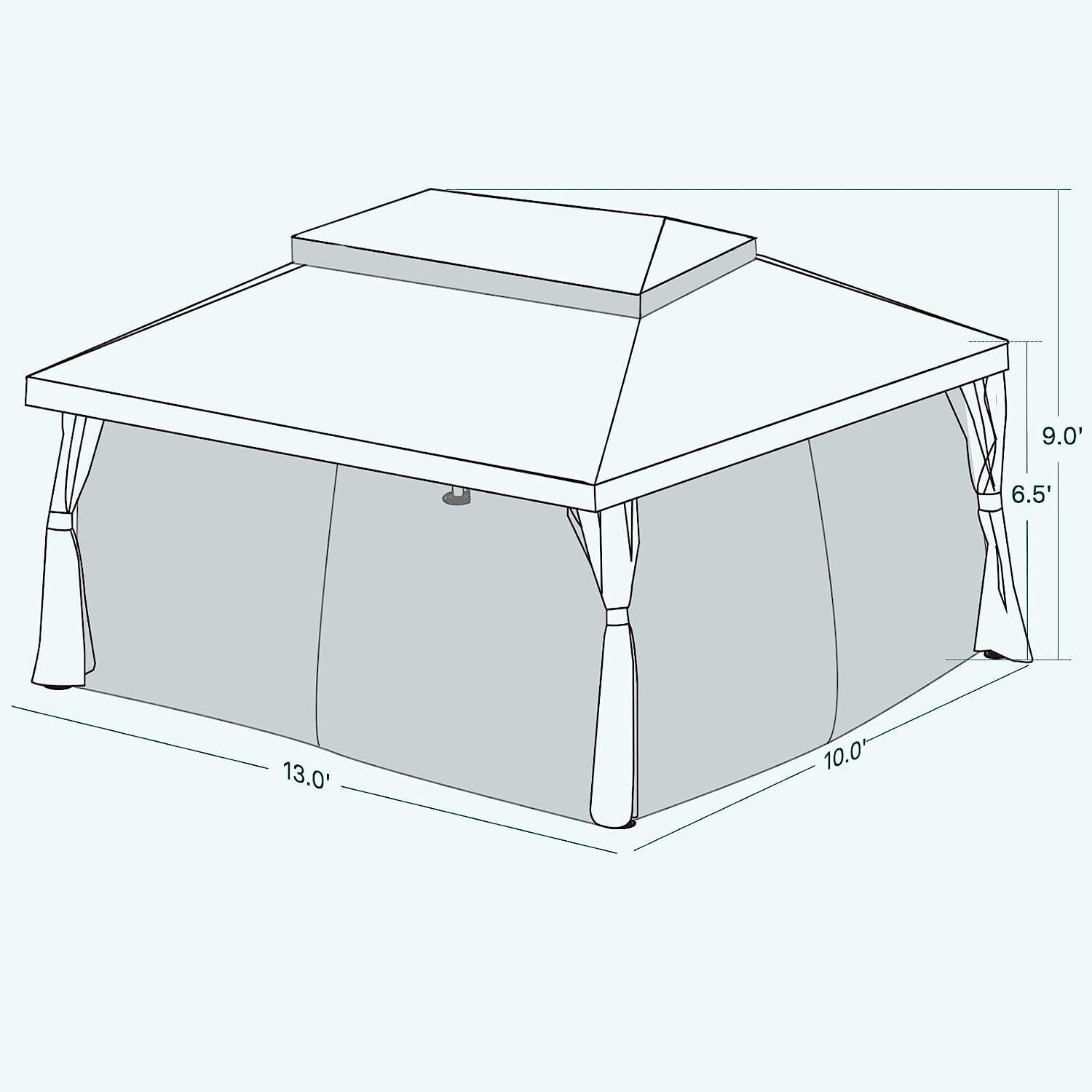 • Spacious Outdoor Retreat: Create a comfortable and stylish outdoor oasis with our 10x13 ft gazebo. Perfect for your patio, deck, backyard, or garden, it provides ample space for relaxing, dining, and entertaining.