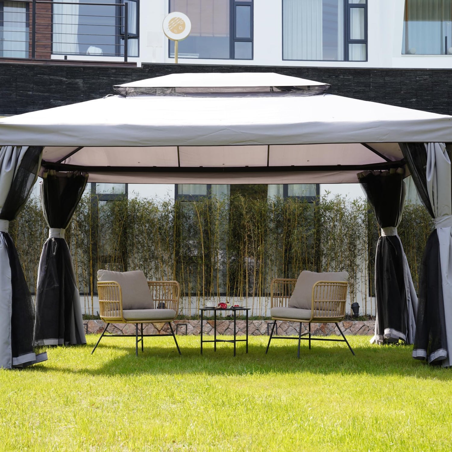 Yangming Gazebo 10X13 ft Outdoor Gazebos Clearance with Outside Mosquito Netting and Curtains for Patio Deck Backyard Garden, Gray