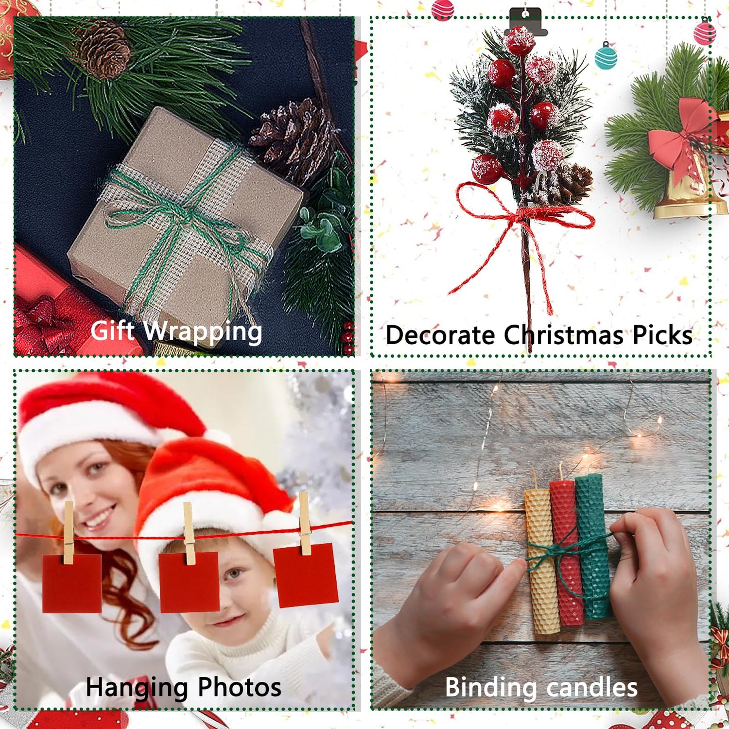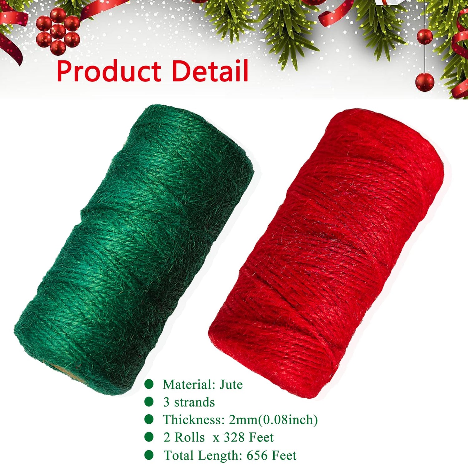 - CHRISTMAS COLOR: Twine comes in vibrant Christmas colors--red and green to enhance your holiday decorations. Suitable for adding to your Christmas tree, garland and holiday-themed crafts