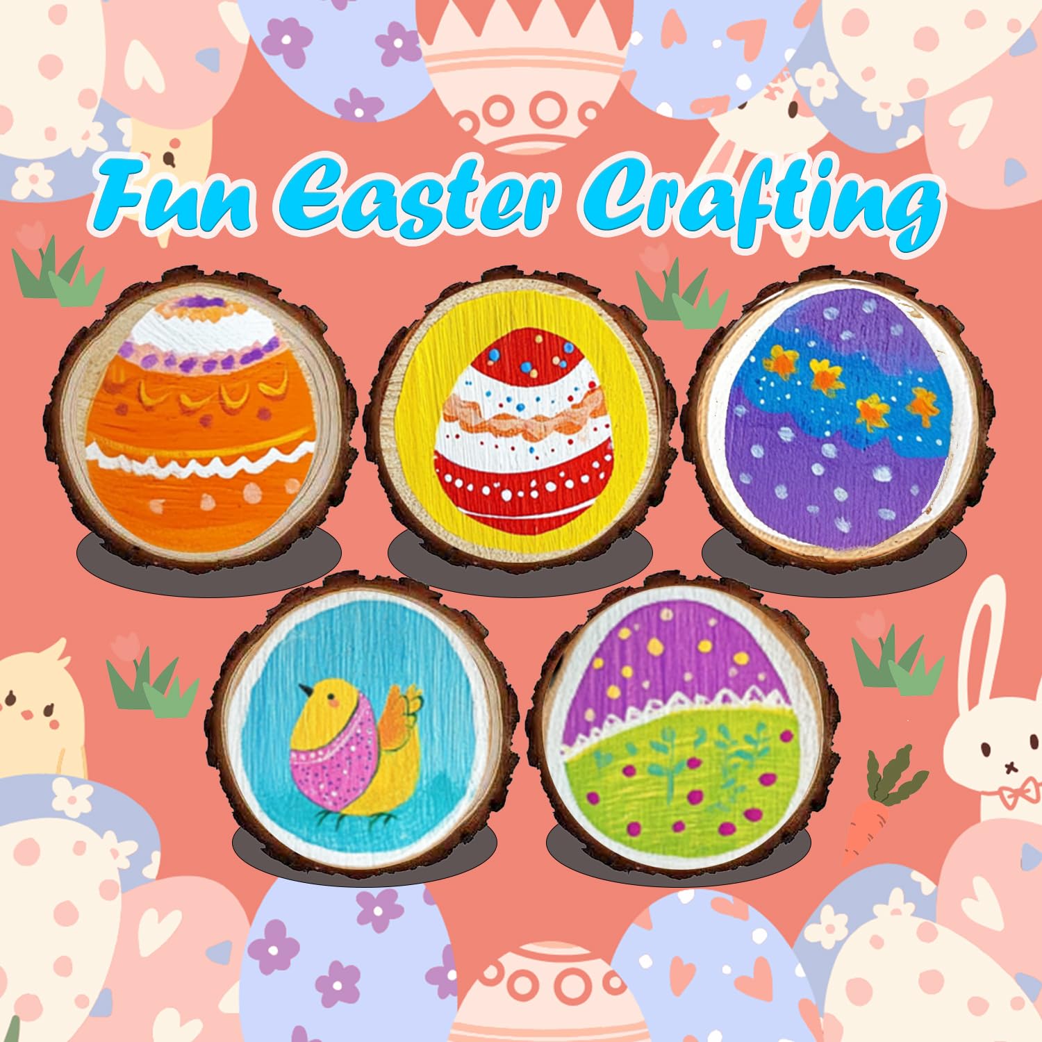 Kids Wood Painting Craft Kit, Glow-in-the-Dark Paint and Diamond Painting on Wood Slices with Stickers & Wiggle Eyes, Ideal Arts and Crafts for Kids Ages 5-12, Gifts for Halloween, Christmas, Birthday