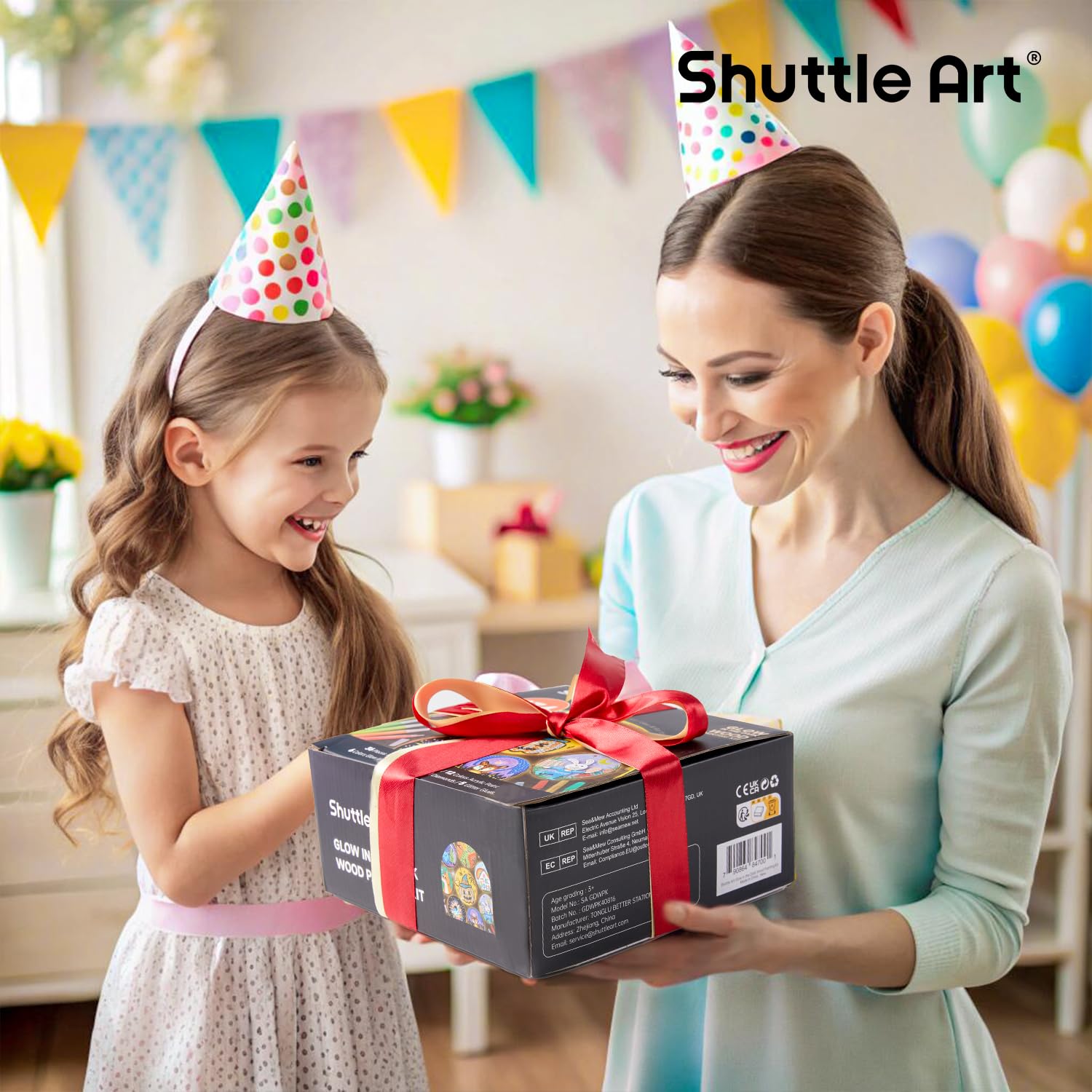 - COMPLETE CRAFT KIT FOR KIDS: Shuttle Art wood painting kit Includes bunch of glow-in-the-dark paints, acrylic paints, diamonds, stickers, wiggle eyes, wooden pieces and tools, offering everything kids need to unleash their creativity, ideal arts and crafts for kids ages 5-12 years old(CHOKING HAZARD-not for children under 3 yrs!)