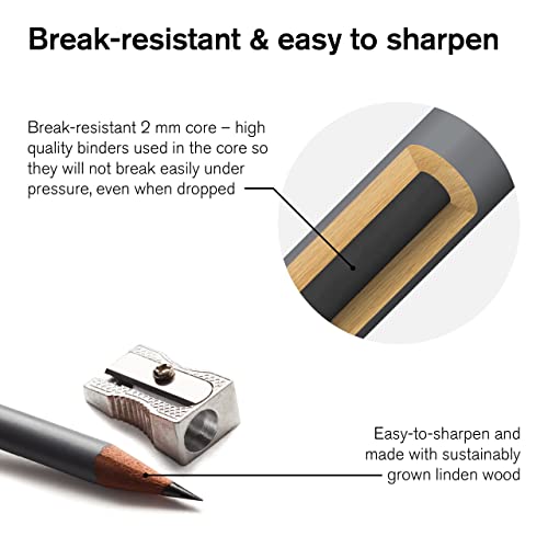 - High quality graphite in an ideal range of hardnesses; 4H/3H/2H/H/F 2mm, HB 2.1mm, B 2.2mm, 2B/3B/4B 2.6mm, 5B/6B 3.1mm