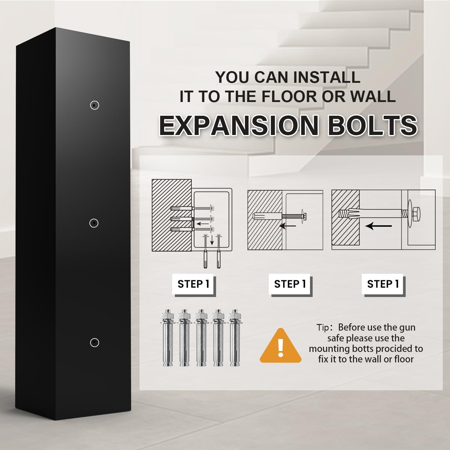 - β γSolid & Secure ConstructionγThe rifle safe is constructed with all-steel and a robust 11.81-gauge steel plate for durability. It features 5 double-sided solid locking bolts for maximum protection against tampering. The solid steel build ensures strength and reliability, while the advanced locking system adds an extra layer of security for your firearms.