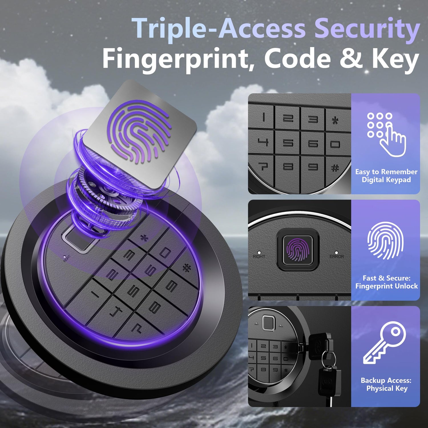 - [Triple-Access Gun Safe with Advanced Biometric Entry]This gun safe for rifles and pistols offers three secure entry methods: fast fingerprint recognition via a biometric gun safe system, a digital keypad, and backup keys. The fingerprint gun safe ensures quick, reliable access while keeping firearms protected. Perfect for use as a rifle safe or shotgun safe, this versatile gun locker offers flexible security for responsible owners
