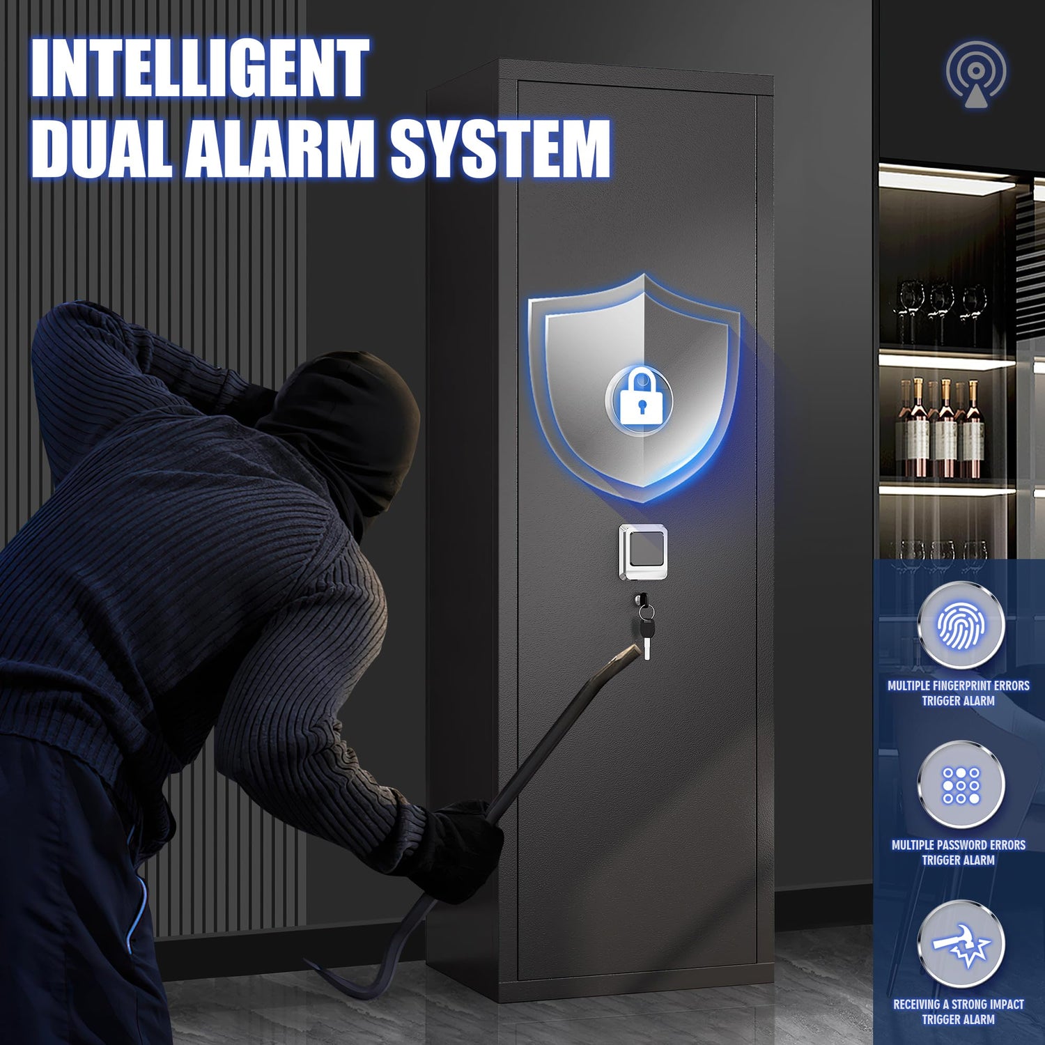 • 【Heavy Duty Gun Cabinet, More Secure】 90lbs heavy duty gun safe cabinet, the entire cabinet is made of high quality steel, while the gun cabinet comes with an alarm device, forced unlocking caused by vibration and wrongly enter the password more than three times will trigger the alarm device, security and anti-theft.