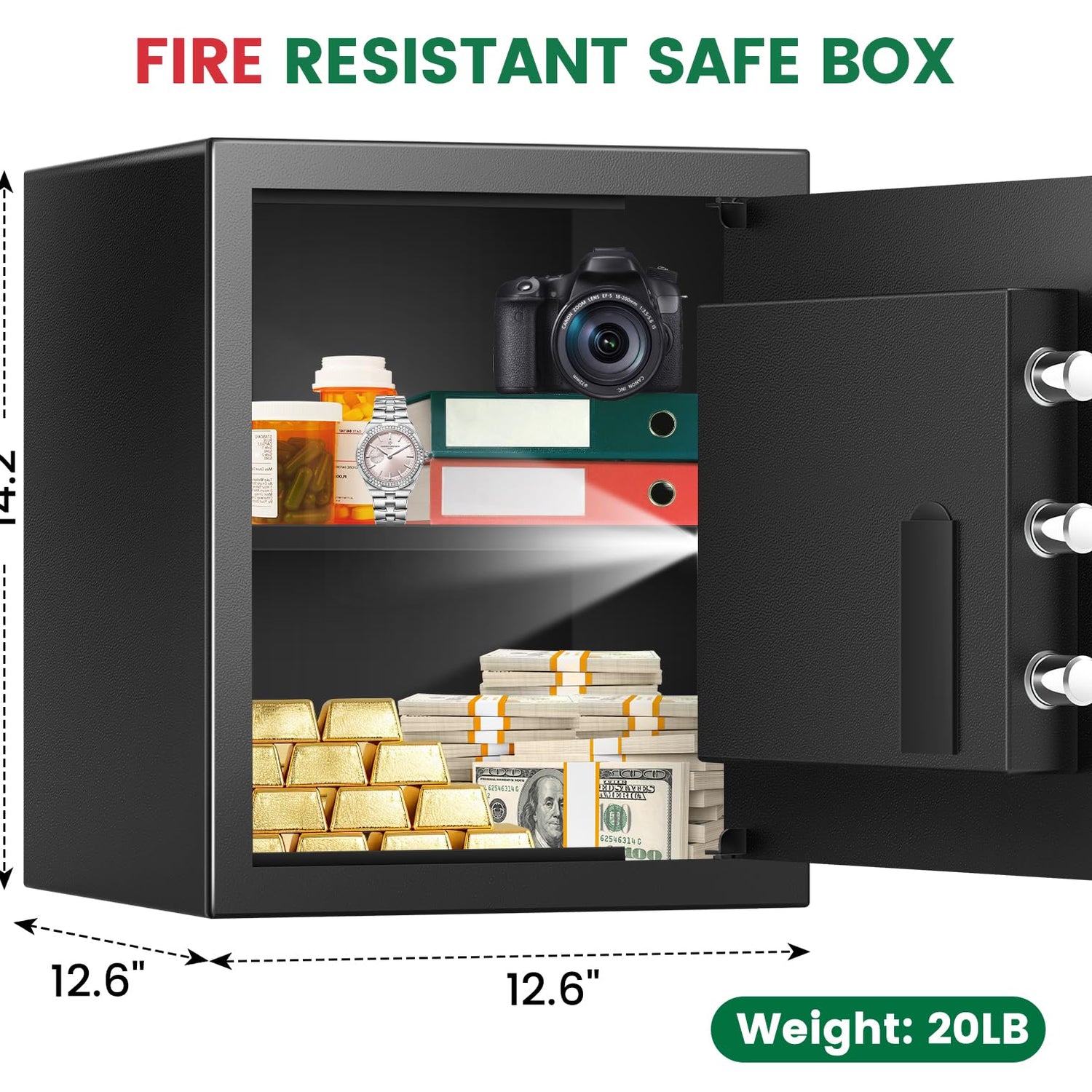 2.0 Cuft Biometric Safe Box, Fireproof Safe for Home with Digital Keypad and Spare Keys, Safety Box for Money, Documents, and other Valuables