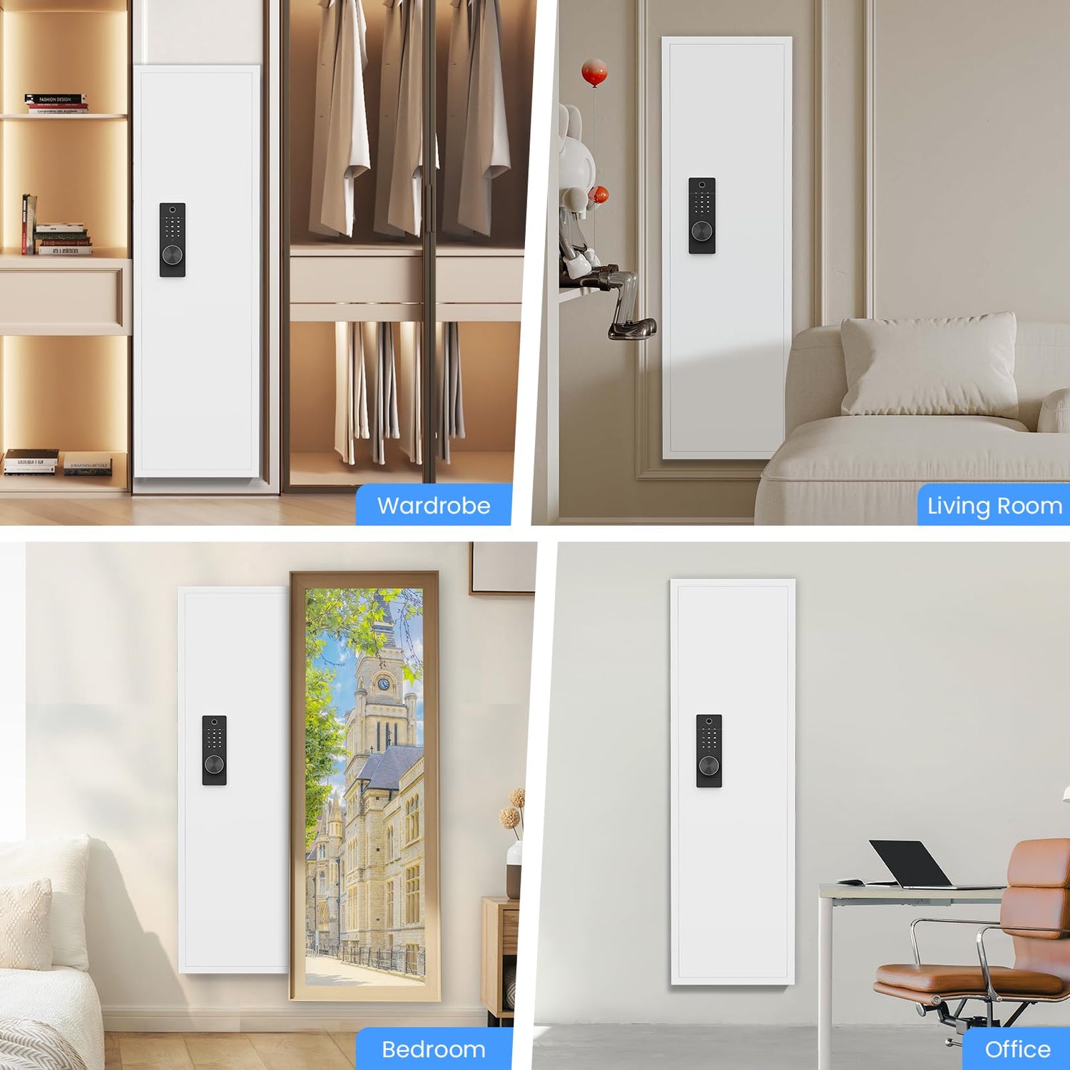 - [Hidden Gun Safe] A gun safe hidden in wall, what an amazing design! Shh, just the secret for you, can protect your valuable effectively when burglar in. Silkight in wall safe fit perfectly between studs that are on 16” centers. Versatile for any room, perfect hidden in everywhere in your house, closet, entryway, bedroom, or your living room, anywhere is OK!