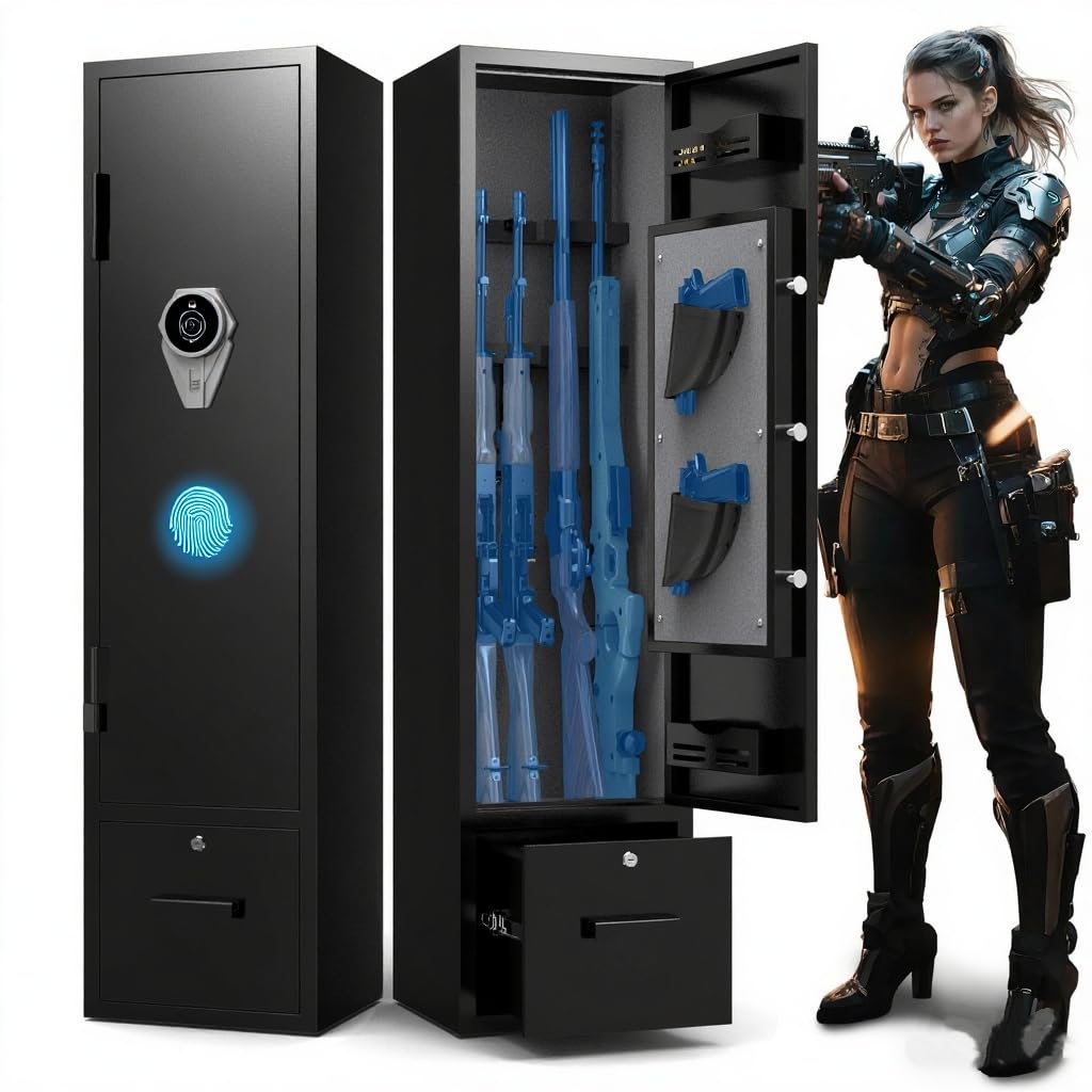 - ✓【 Sturdy Gun Safe with Drawer 】-- The lockable drawer at the bottom of the rifle safe can store various items according to individual needs, such as gun accessories, bullets, documents, cameras, jewelry, cash and other valuables.