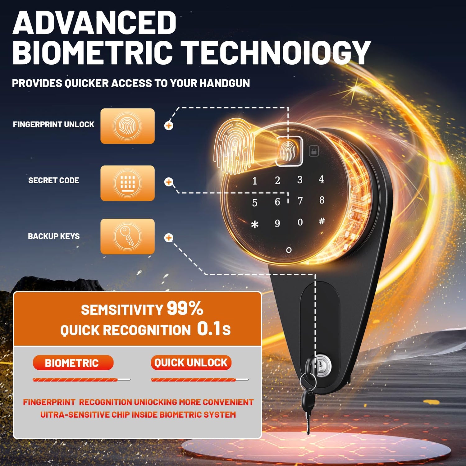 - 【Intelligent Lock】 This gun safe is compared to other gun cabinets, this gun safeuses the most intelligent unlocking method on the market, which can be unlocked in the most accurate and fastest way. The fingerprint and password unlocking of each gun safe for rifles is tested hundreds of times before it leaves the factory to ensure its stability and accuracy.