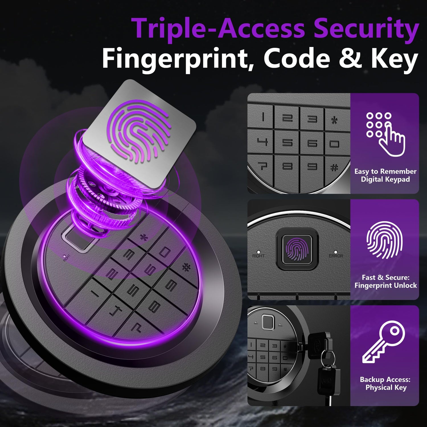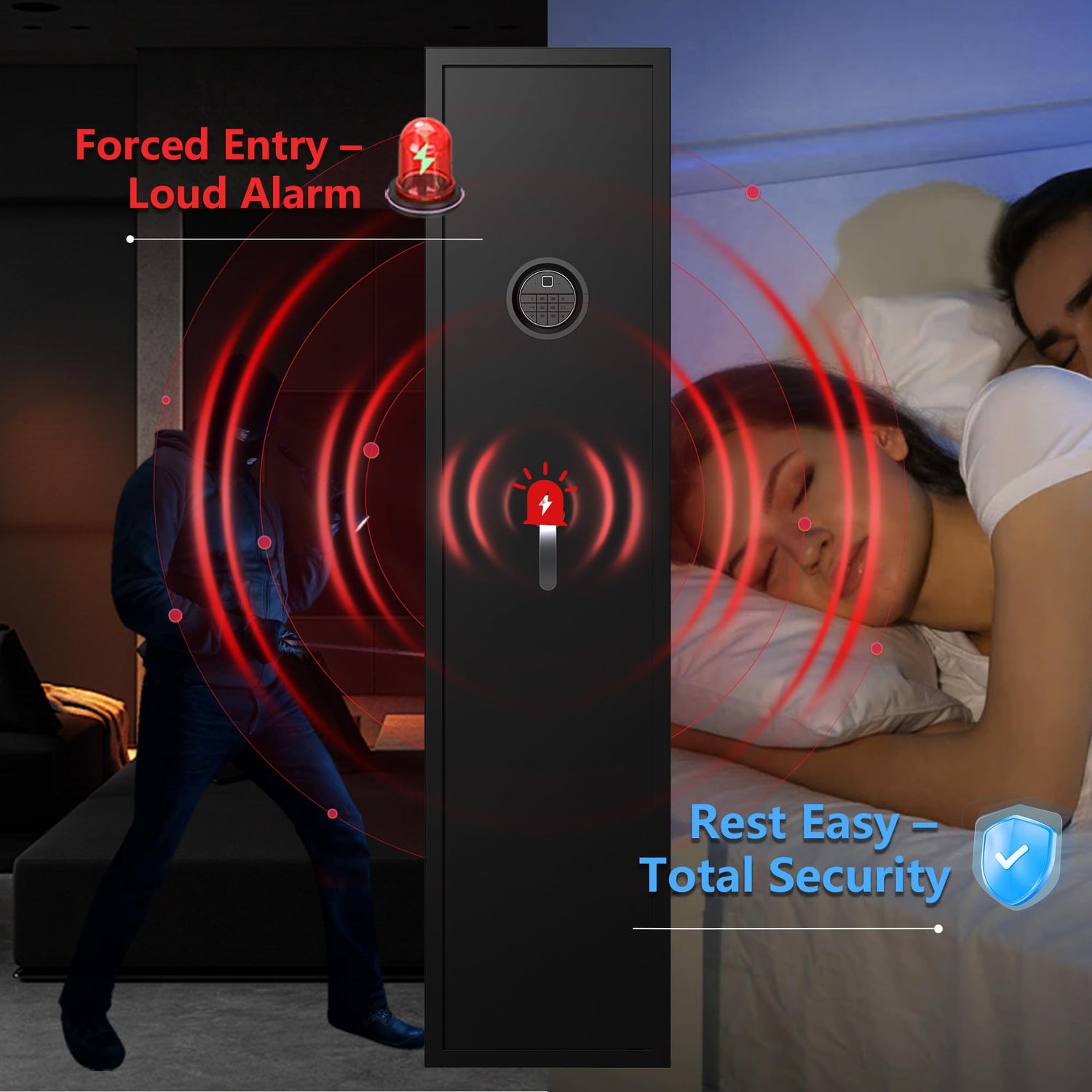 • [Triple Access Methods: Fingerprint, Password & Keys]This biometric gun safe features three access options: fingerprint scanning, digital password, and backup keys. The fingerprint gun safe ensures quick, reliable access to your rifles and pistols