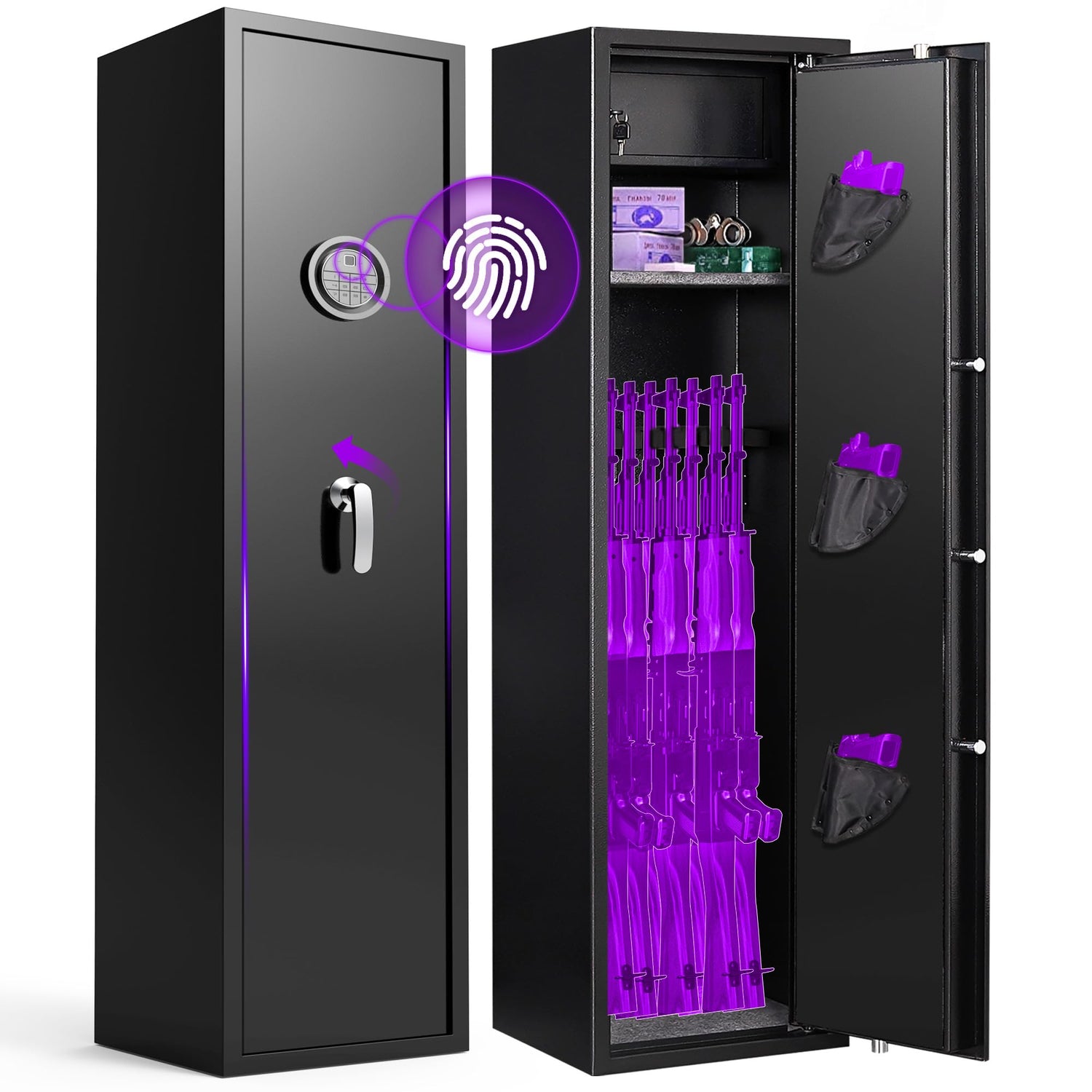 8-10 Rifle Safe for Home, Biometric Fingerprint, Password and Keys Gun Locker, 57.1" Tall Gun Safe No Assembly Required, Gun Safe for Rifles with Led Light, Black Firearm Safe, Alarm System
