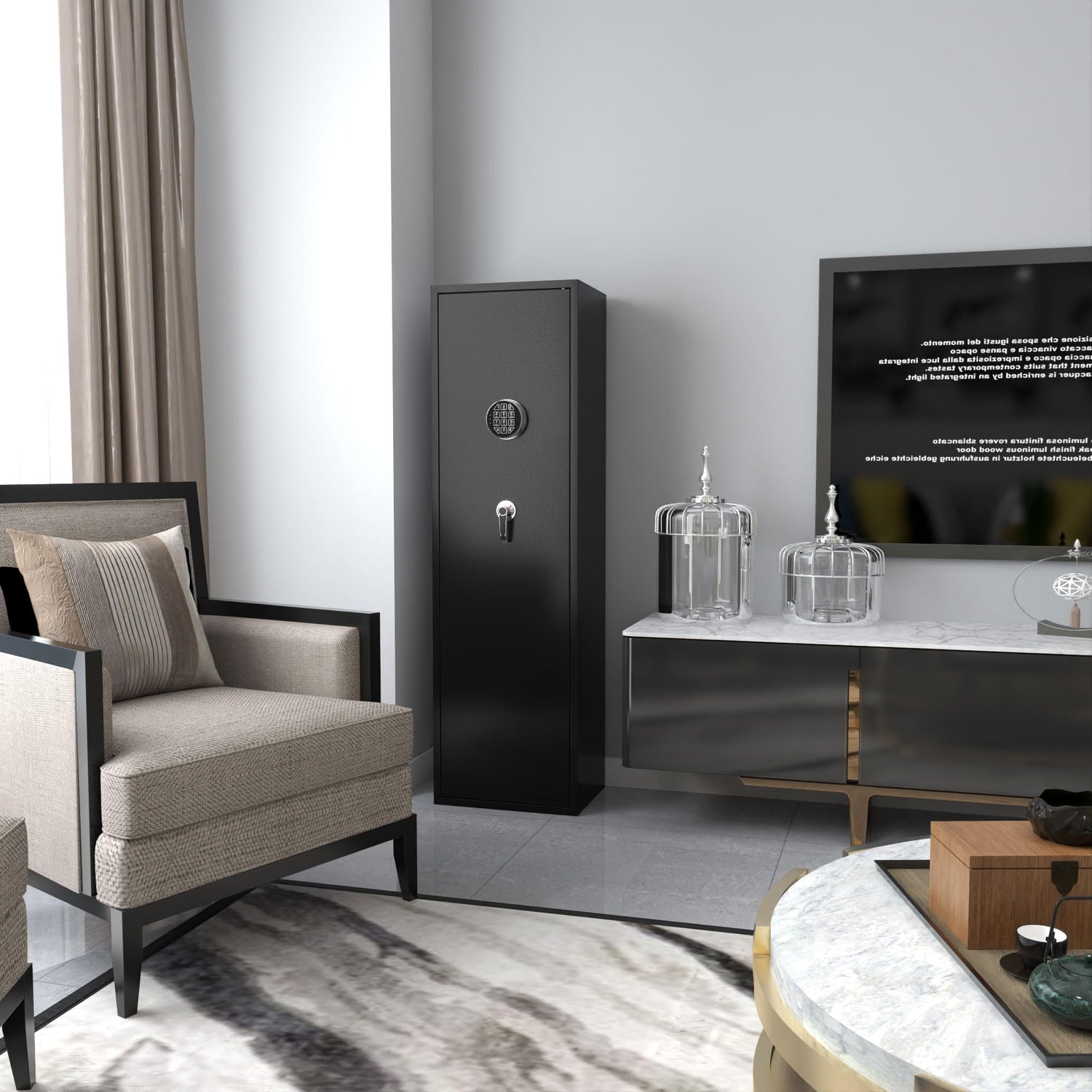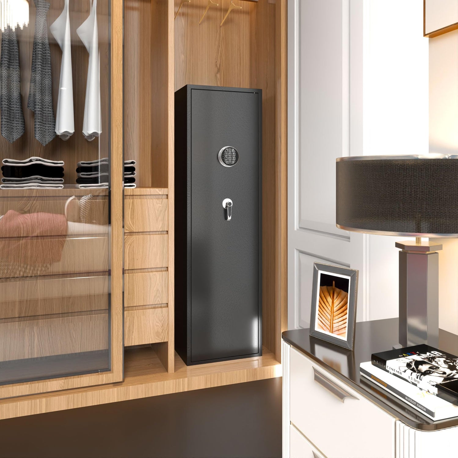- Two Ways to Open: Comes with a programmable 10-digit touchscreen keypad for quick access; Can also be accessed with Key, our cabinet includes 2 emergency keys for emergency opening