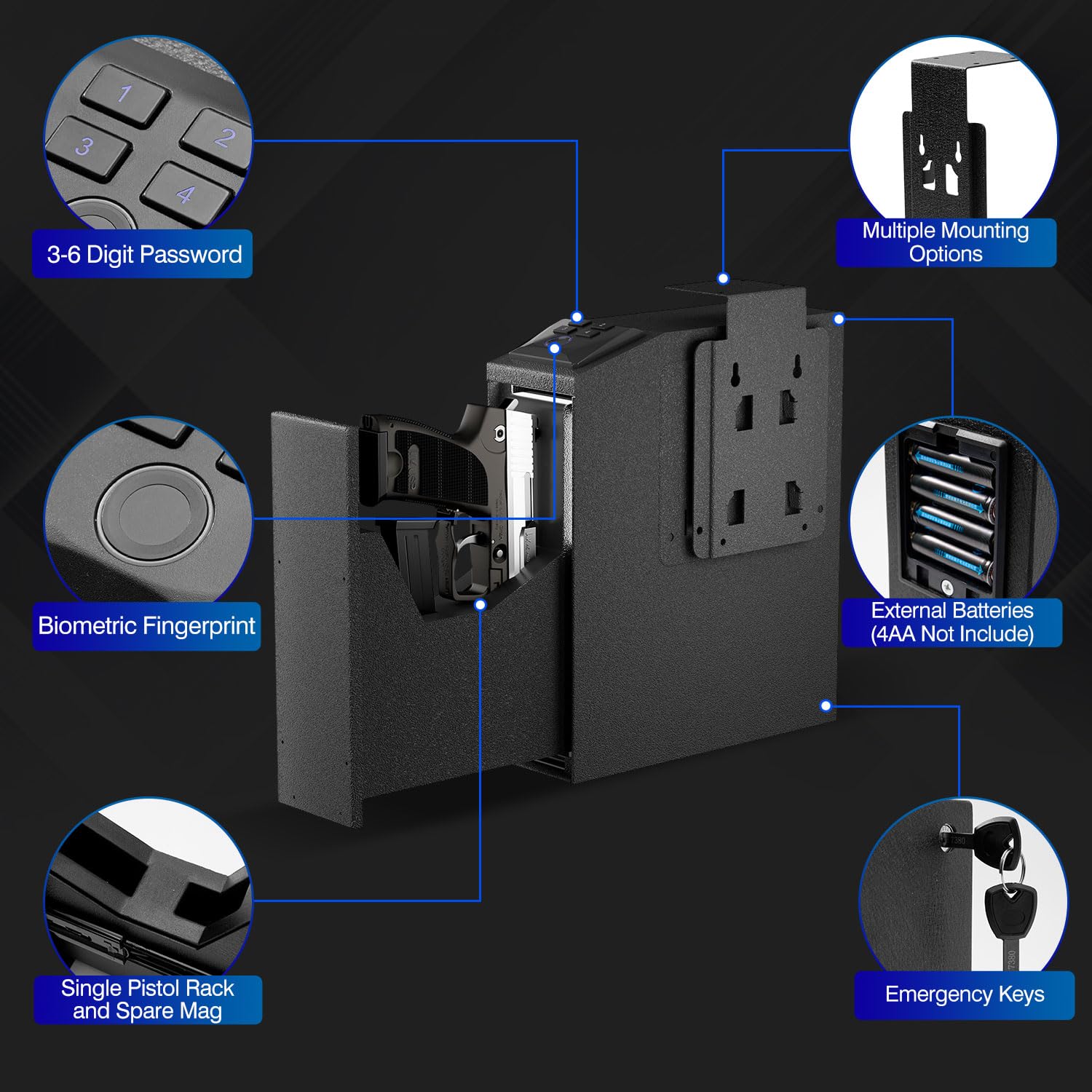 Arvilon Slider Handgun Safe for Nightstand, Biometric Beside Gun Safe for Pistols with Quick Access Sliding Door, Pistol Safes for Wall Bedside Desk Vehicle with the Fingerprint, Keypad