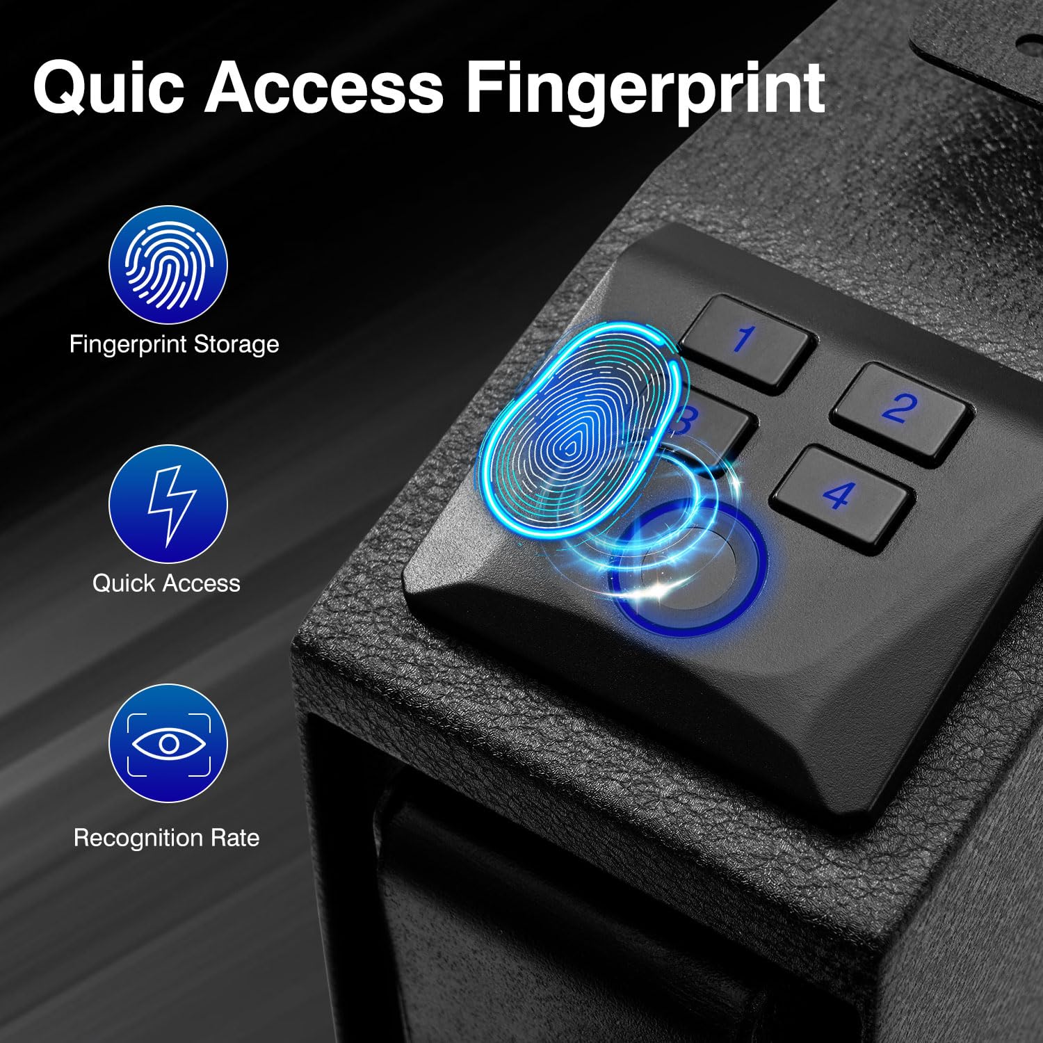 • 【Gun Safe for Handgun With Sliding Door】The latest high resolution 508DPI biometric sensor can store up to 50 unique fingerprints, capturing high-resolution fingerprint images with excellent match speed of less than 0.1 second for extra-fast entry. You can also use manual keys or a 3-6 digits PIN code for access.