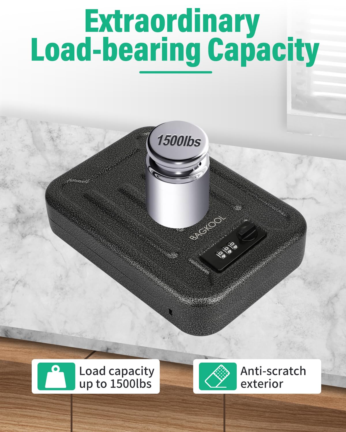 • TREASURE GUARD: Your perfect under-seat concealed portable gun safe. It offers a safe and secure place for your handguns, ammunition, passports, cash, mobile phones, credit cards, watches, jewelry, ensuring out-of-reach-from-children safety during home stays, car travels, or overnight trips.
