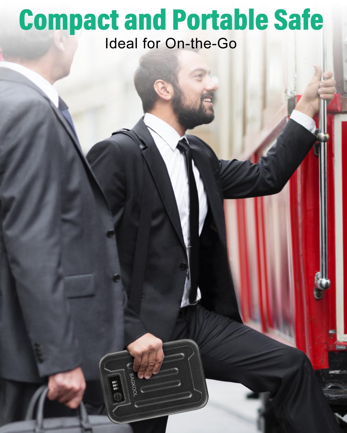 BAGKOOL Fireproof Security Box with 3-Digit Combination Lock, Portable Safe for Guns, Money, Documents - 39IN Patented Security Cable Included - Ideal for Valuables and Firearms, Size 9.4x6.5x2 IN