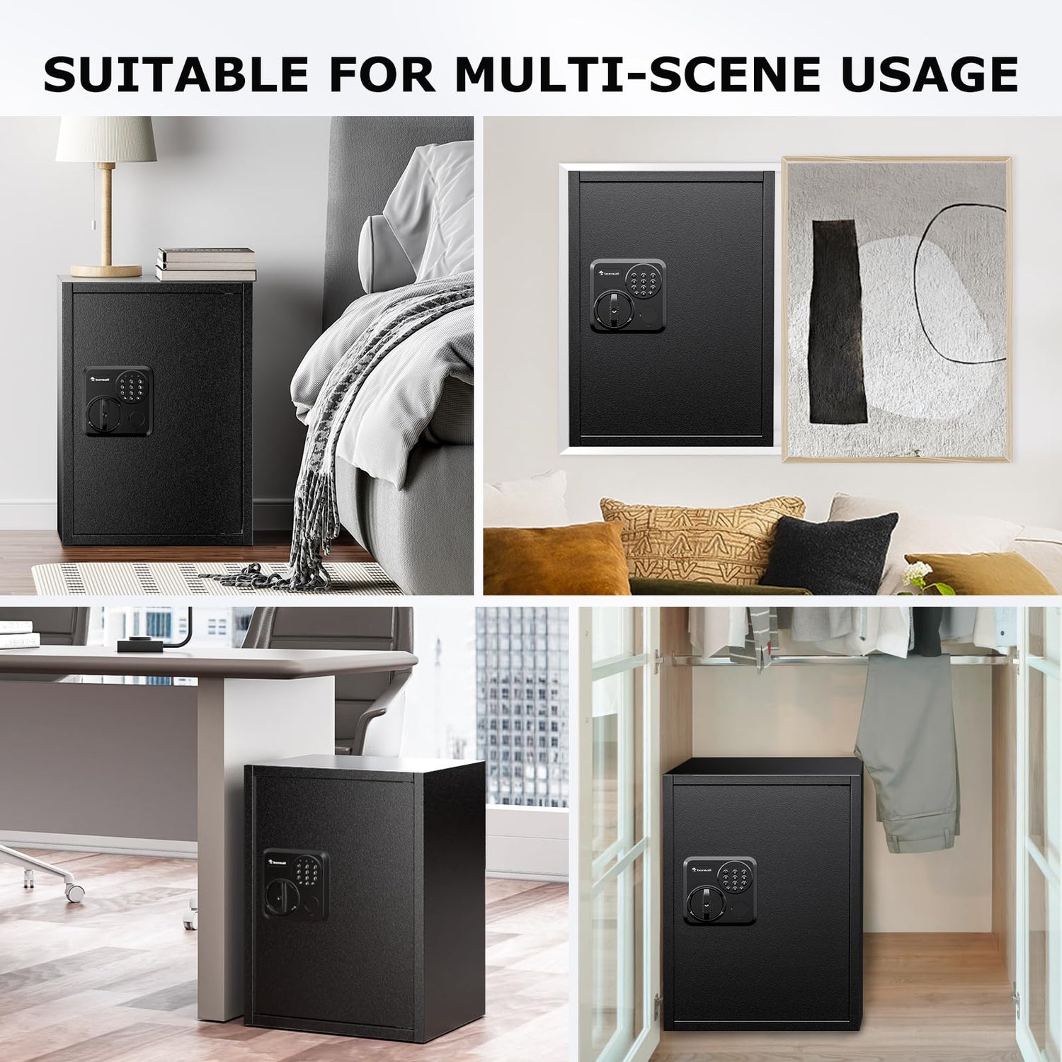 • 1.8 Cubic feet Capacity: The spacious interior features detachable metal shelves for multi-level organization, making it easy to store valuables like jewelry, documents, and electronics while preventing clutter