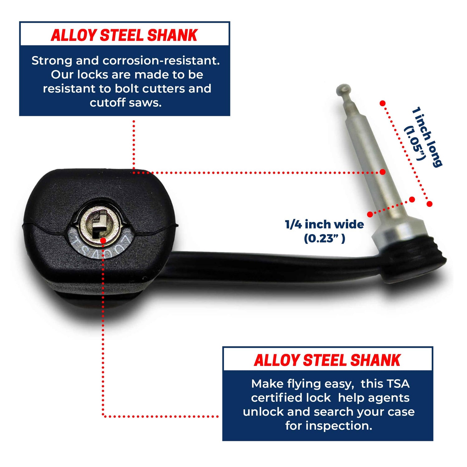 - CHILD-SAFE DESIGN: Keep your firearms out of the wrong hands. The secure, single-shaft design offers additional gun safety, making our TSA gun case locks perfect for homes with children. A smart choice for responsible gun owners prioritizing a safe and secure home environment.