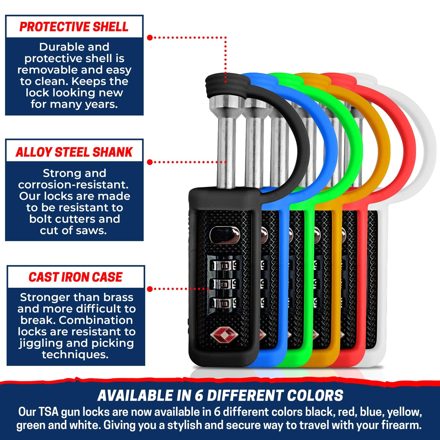 - TSA-APPROVED SECURITY: Travel with peace of mind using our gun case locks TSA approved. Ideal for airport security checks, ensuring compliance while keeping your firearms and belongings secure. Designed to meet TSA regulations, so you can travel hassle-free.