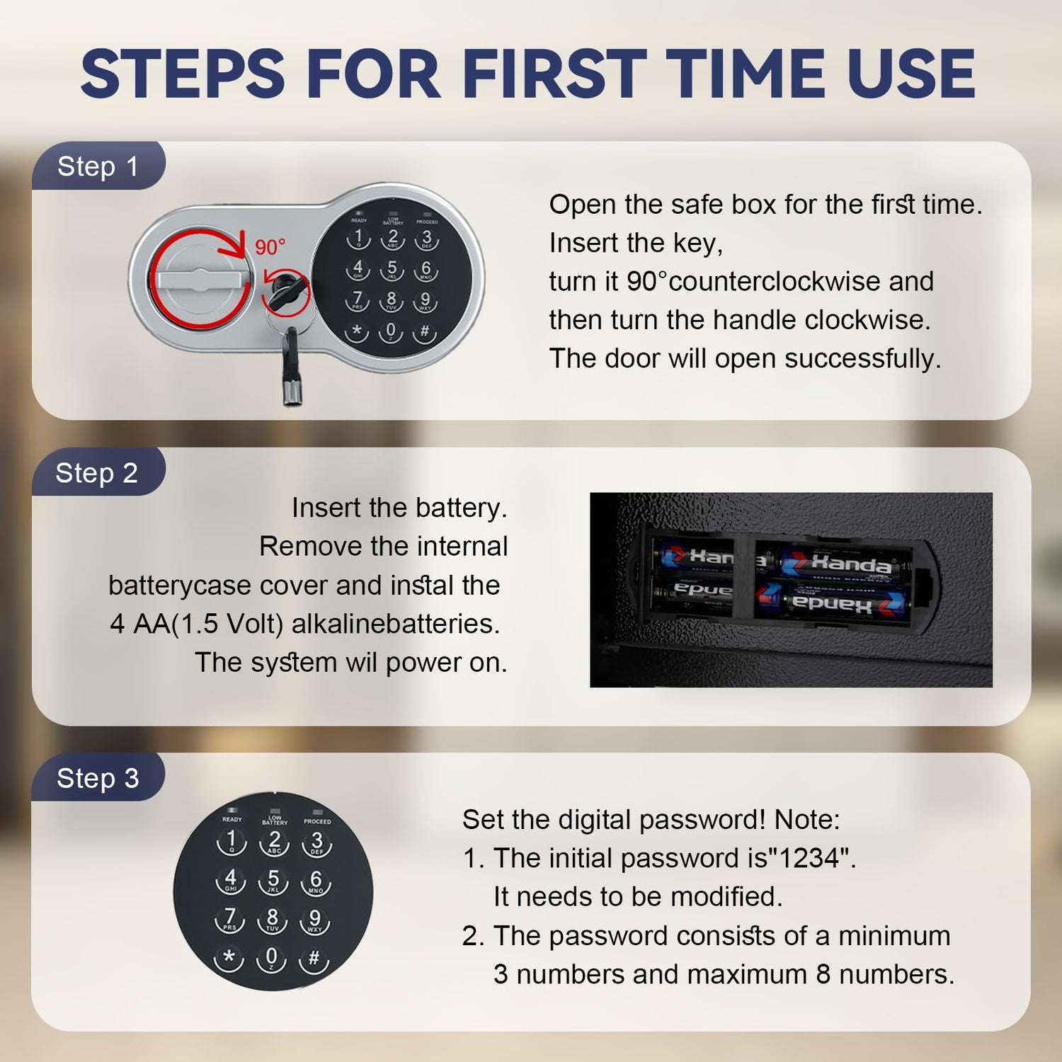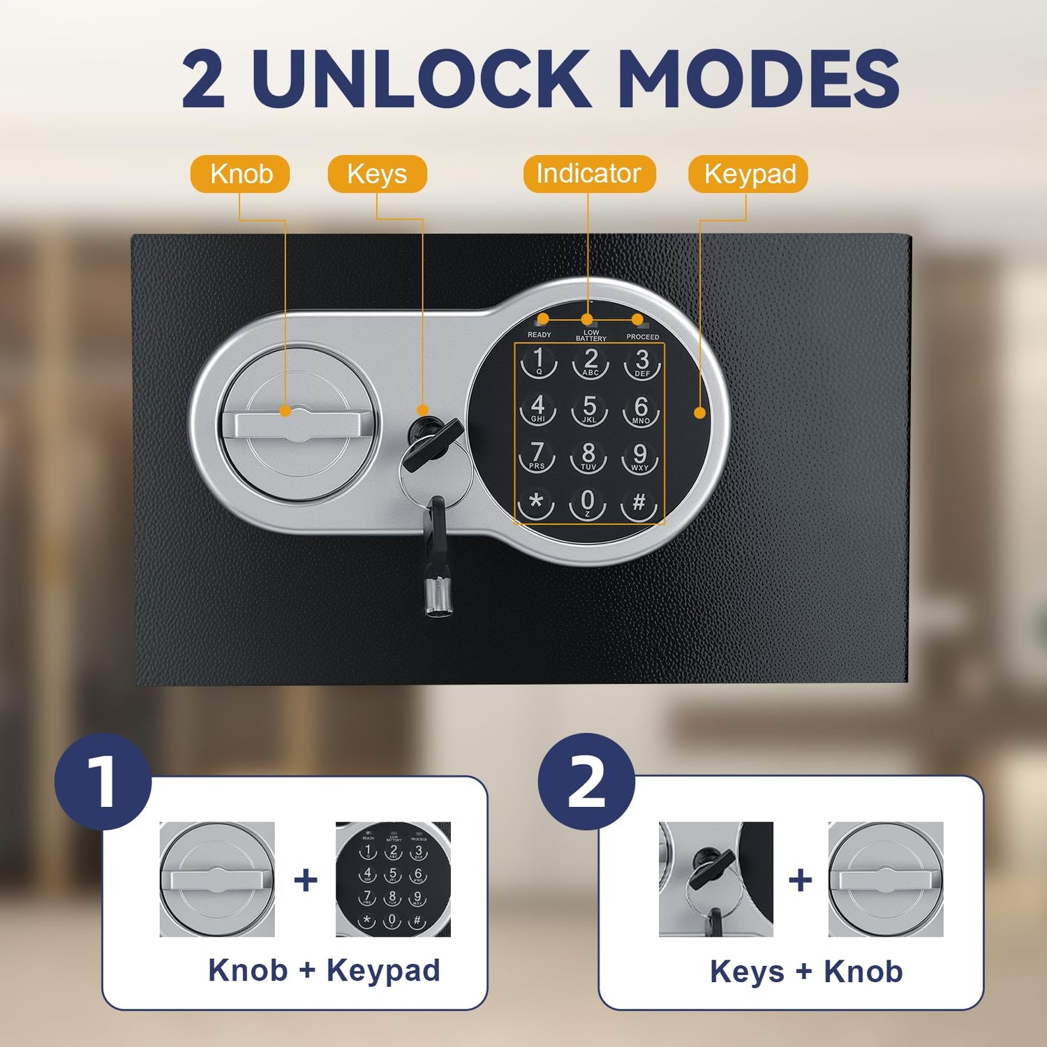 - 【Reliable 2-Way Access & Emergency Backup】Open the safe instantly via the electronic keypad or manual knob. Includes 2 emergency keys in case of forgotten passwords or dead batteries.