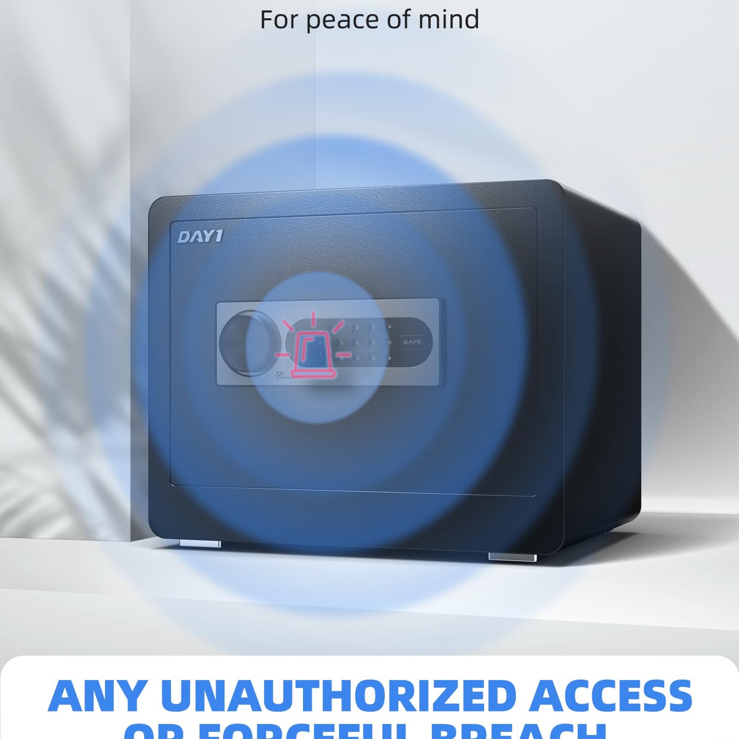 - DUAL ALERT SYSTEM FOR PEACE OF MIND - With a dual alarm warning system, the DAYI home safe ensures your belongings are protected. Three incorrect password attempts or any forceful breach trigger a loud 70-decibel alarm, deterring intruders.