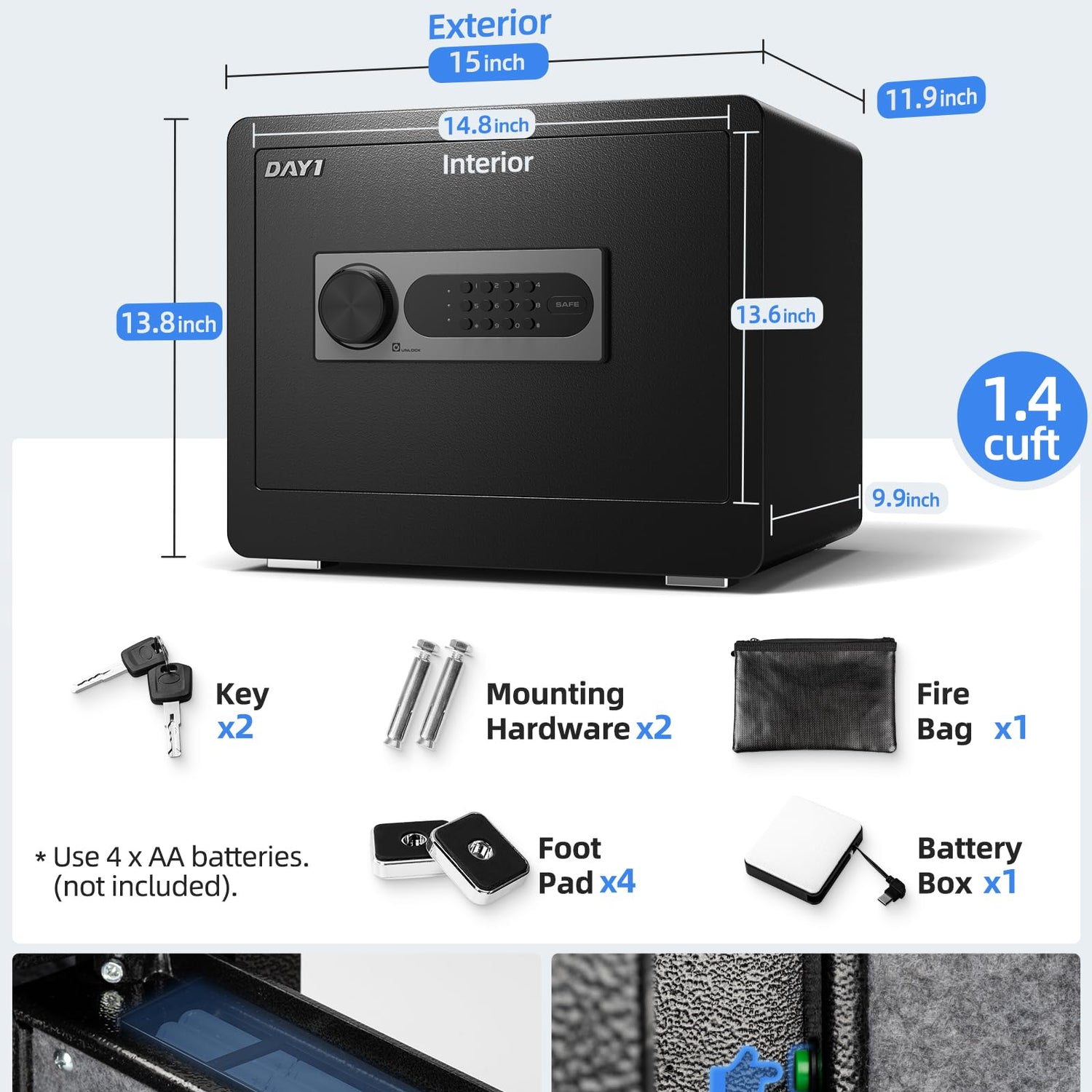 DAYI Safe Box, 1.4 Cubic Feet Home Safe with Fireproof Waterproof Bag, Security Safe Box for Money Cash Valuables, Digital Electronic Keypad, Dual Alarm System, Removable Shelf - D-35