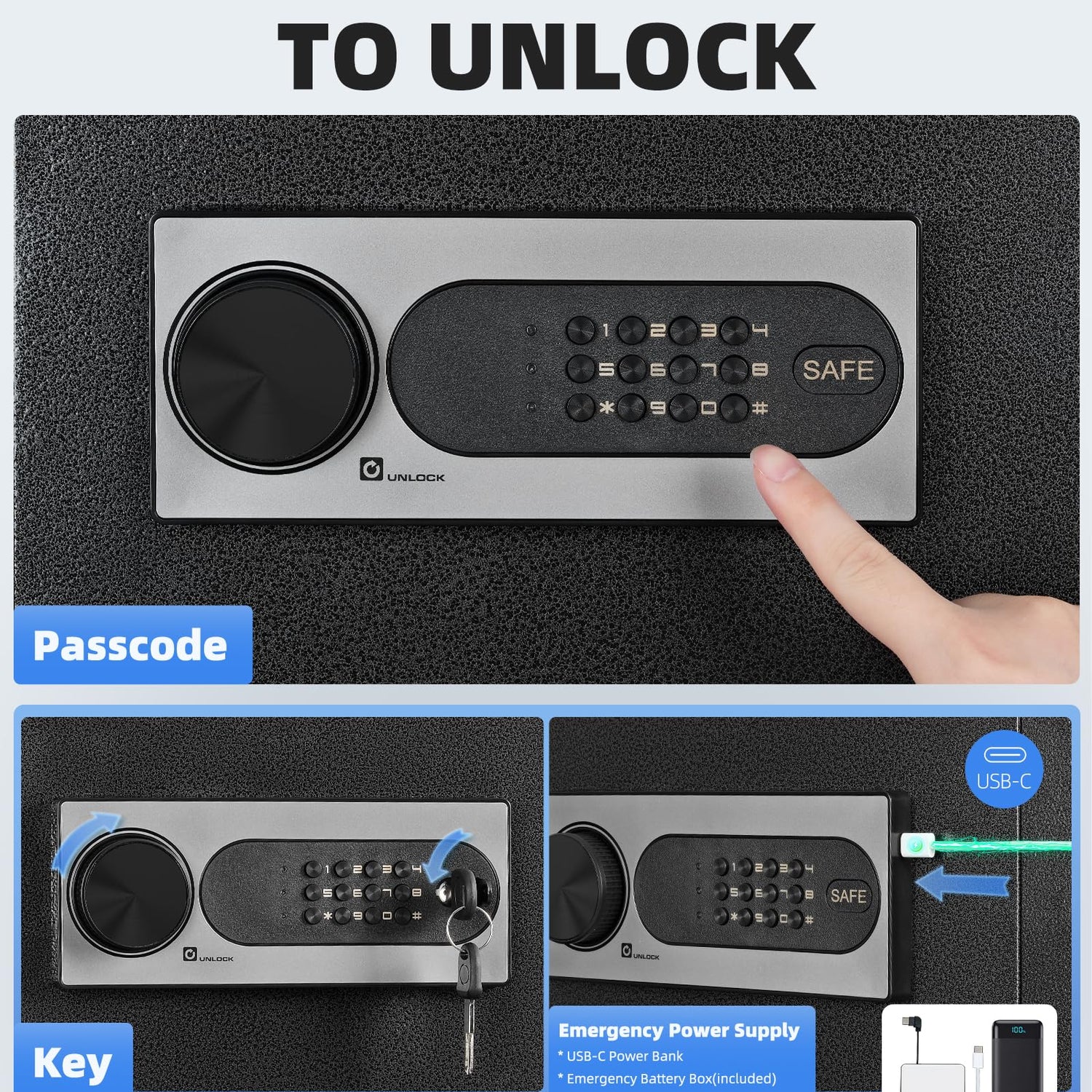 - DIGITAL LOCK WITH KEYPAD - This battery-powered digital locking system uses a programmable 1-8 digit code. Easy to unlock with either a passcode or a manual override key, offers seamless access when you need to. Our safe box locks you can trust.