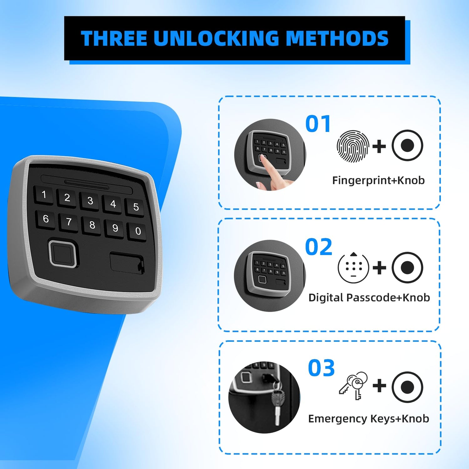 - 【Quick Access 3D Fingerprint, Efficient Unlocking Experience】Gun Safe for Home and Pistols comes with an intelligent fingerprint lock with three unlocking methods. Semiconductor fingerprint reader, silicone buttons can give you a better unlocking experience. The rifle safe also comeswith two emergency keys and a USB charging cable so you never have to worry about running out of batteries.