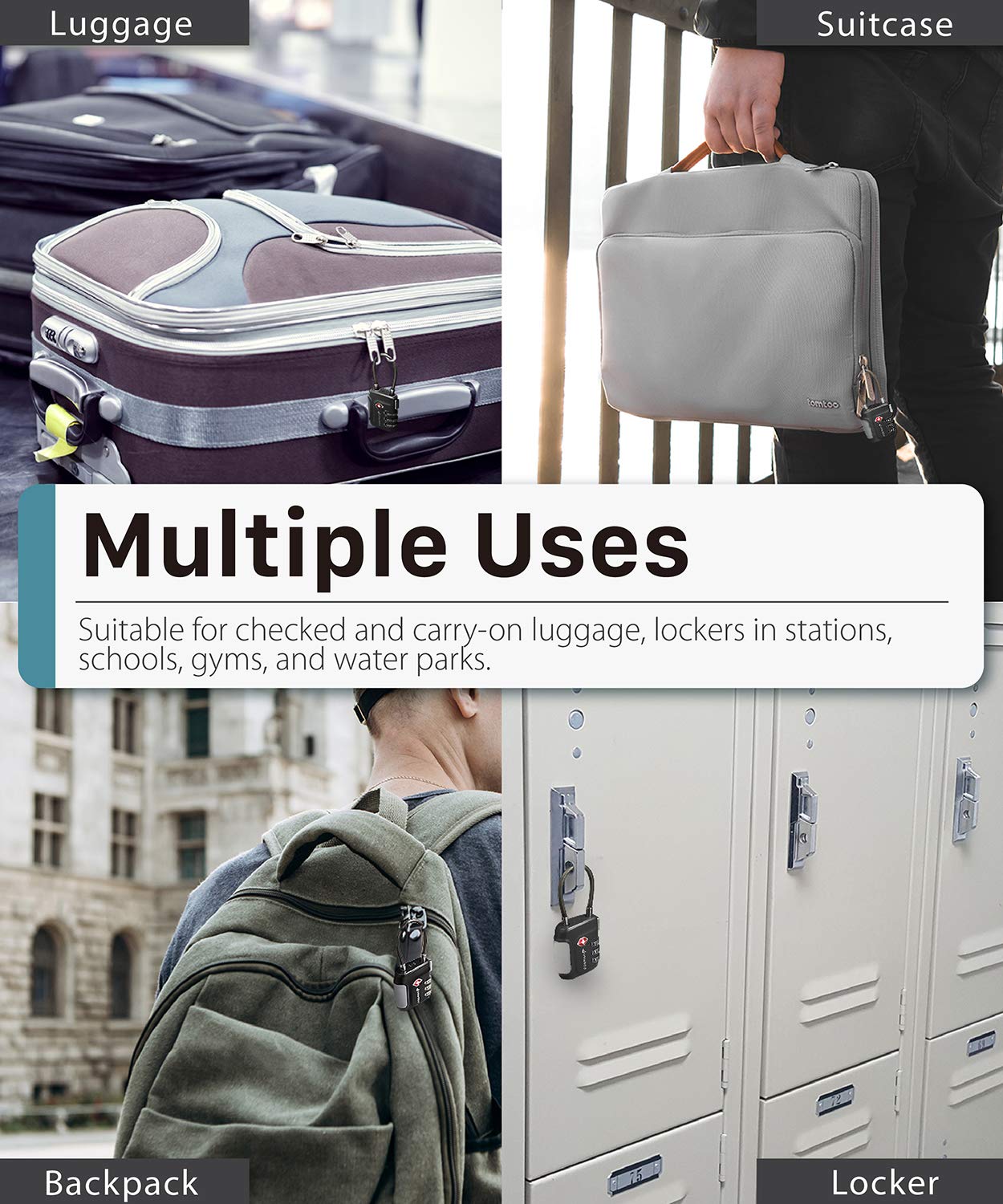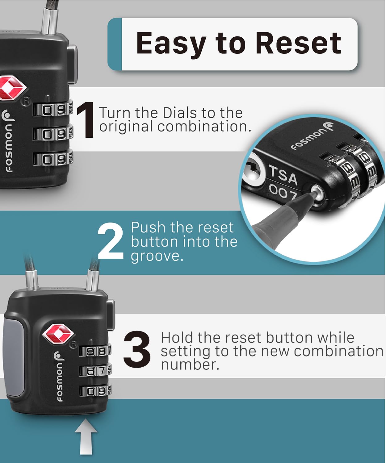 - [VERSATILE LOCKS] The lock is safe with a 3-digit combination. The release button makes it easy to unlock, and prevents accidental unlocking. The flexible cable makes it great not only for luggage, but also for backpack, suitcase, and locker.