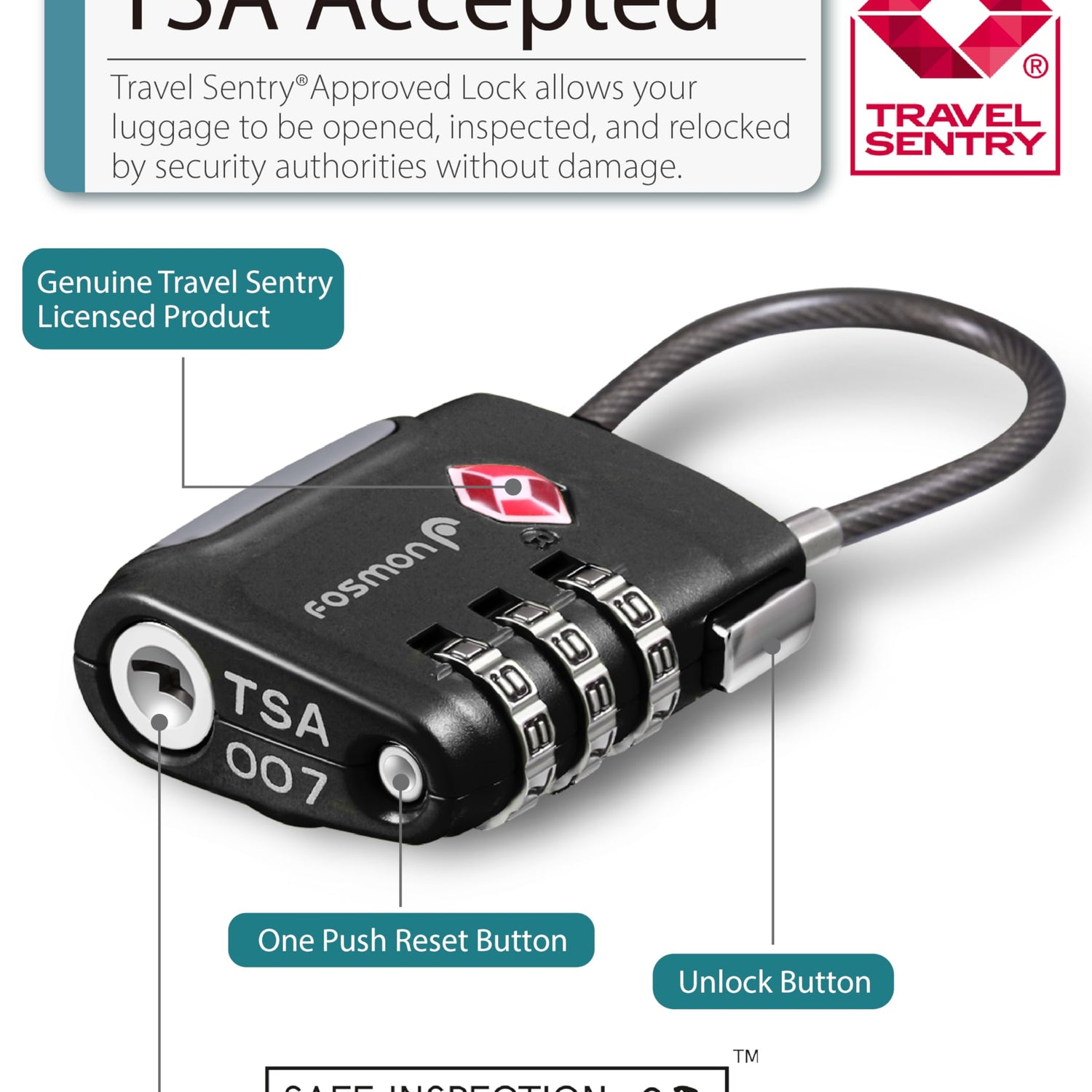 - [TSA ACCEPTED LUGGAGE LOCKS] The Fosmon TSA lock allows your luggage to be checked without damage to the lock. The TSA agent will open and relock your luggage after inspection, giving you peace of mind for the whole trip.