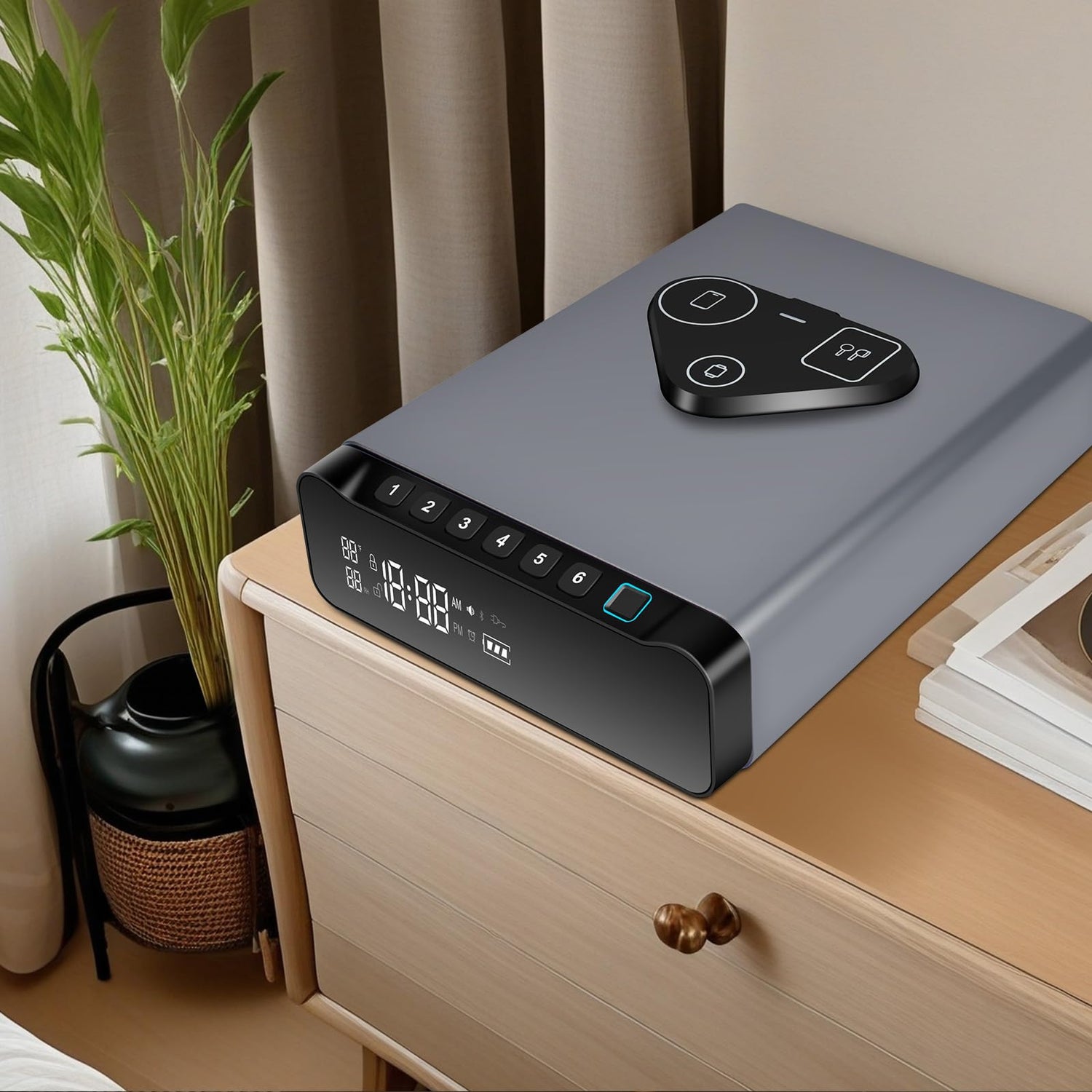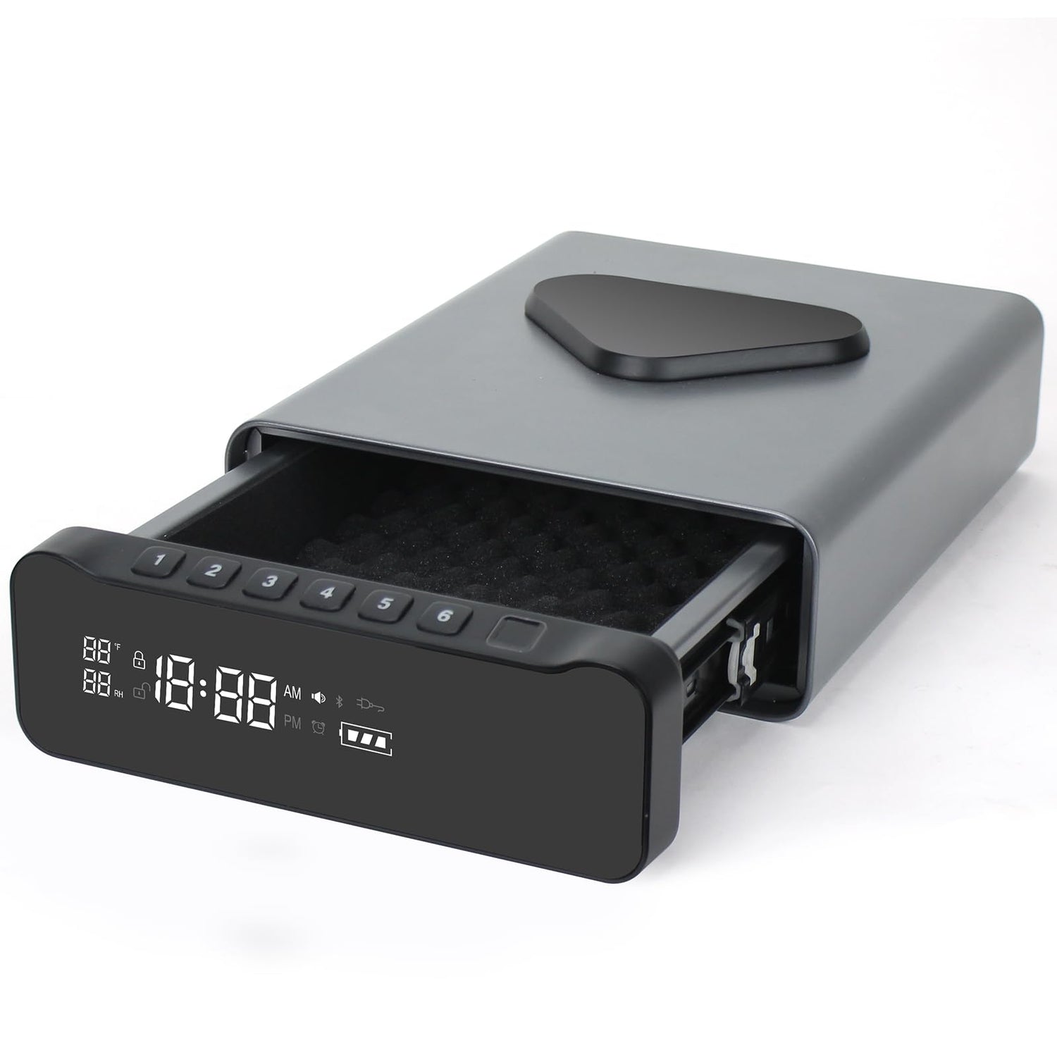 FTOP Biometric Fingerprint Gun Safe, Clock Handgun Safe with 3-in-1 Watch & Phone Wireless Charging, Drawer Lock for Hand guns, Cash, Valuables- with Humidity Reader|Temperature| Alarm Clock| Screen