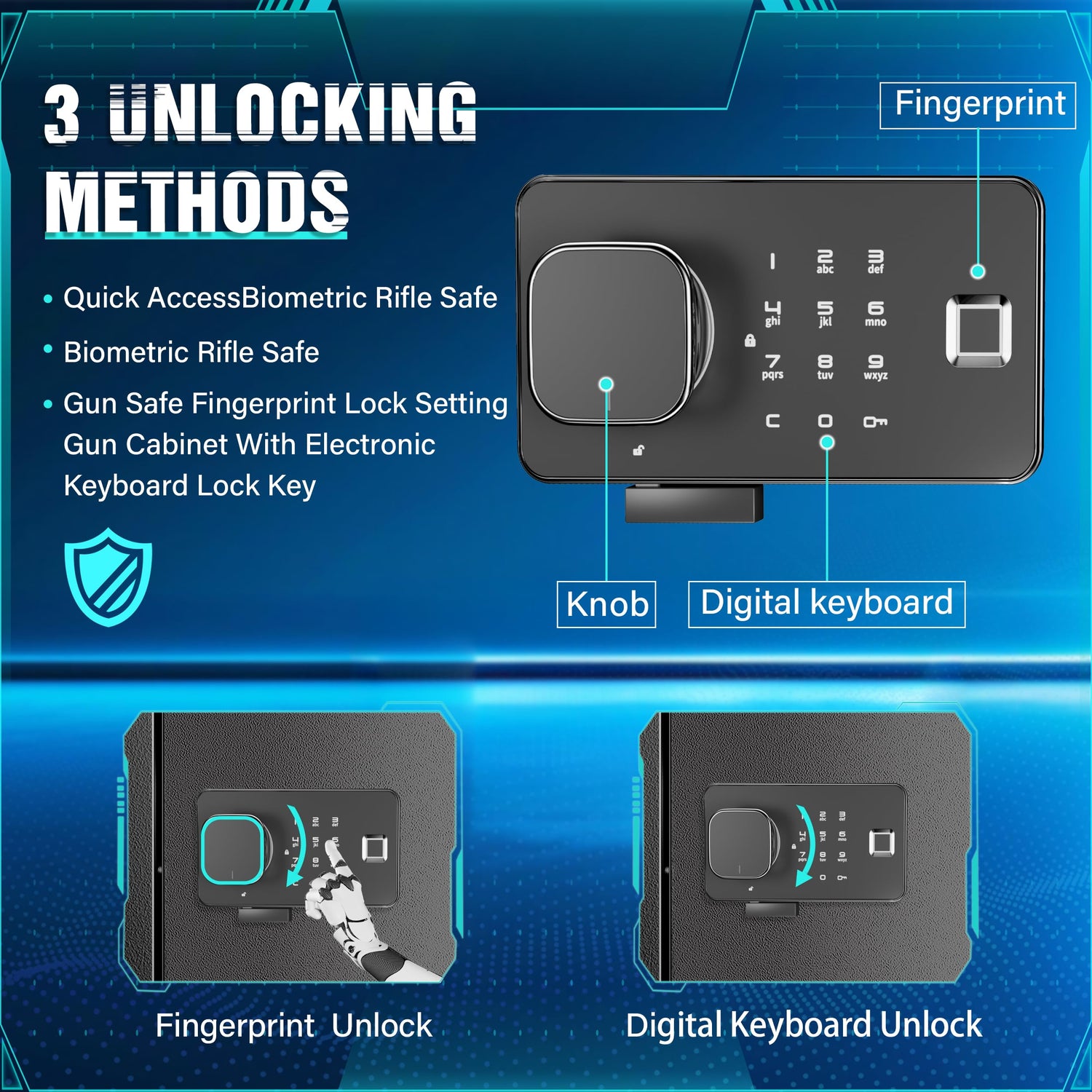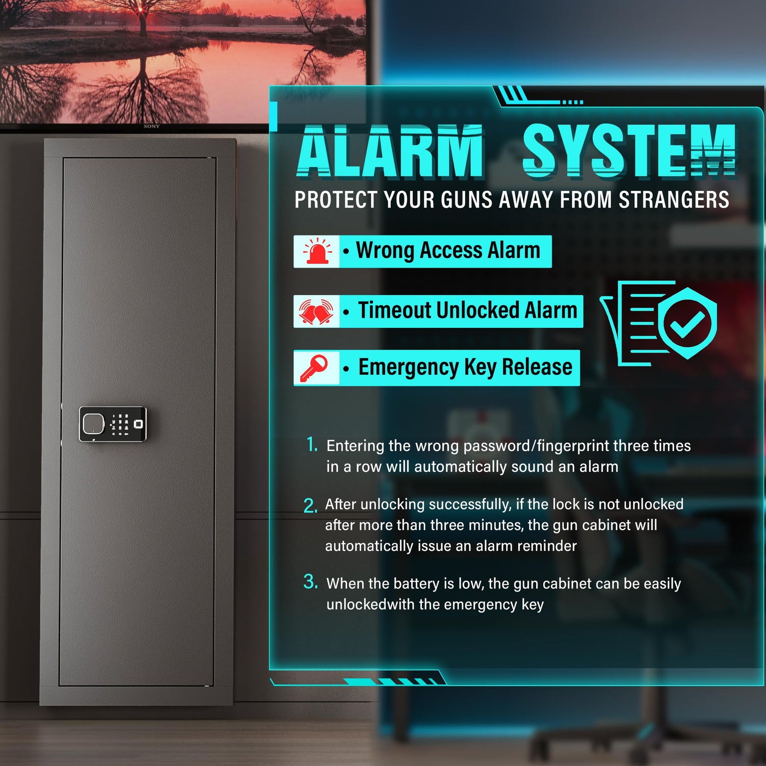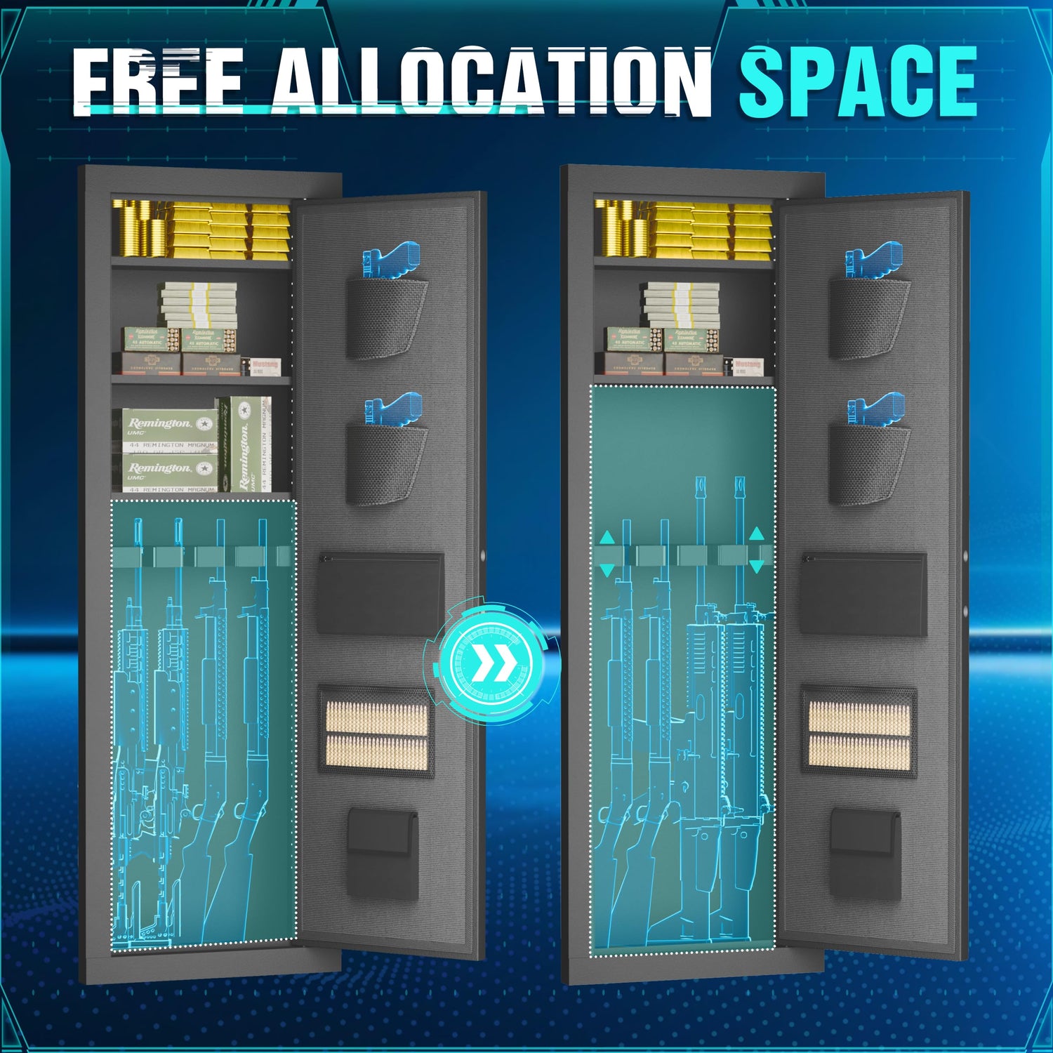 Greenvelly 53" Wall Gun Safe,Gun Safes for Rifles and Pistols with Biometric Fingerprint Lockable Door, 4 Rifle Safe with 3 Removable Shelves for Home Office, Bedroom,Livingroom(Black)