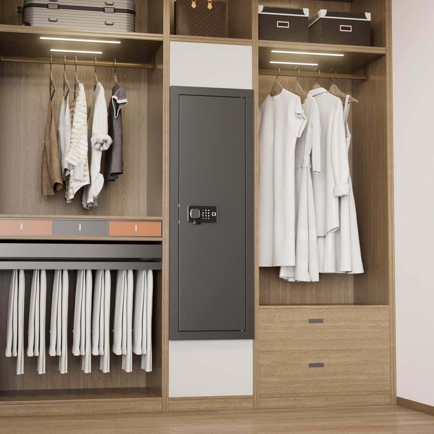 - [LARGE SIZE]:The wall mount safe 53"(H) x 18"(W) x 6"(D) is large enough to store your cash, jewelry, documents, passports and includes three shelves that can be removed based on user preference